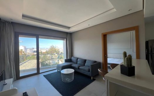 Quartier Oasis superbe studio meublé au calme absolu, offrant un espace parfaitement agencé. • Salon lumineux avec