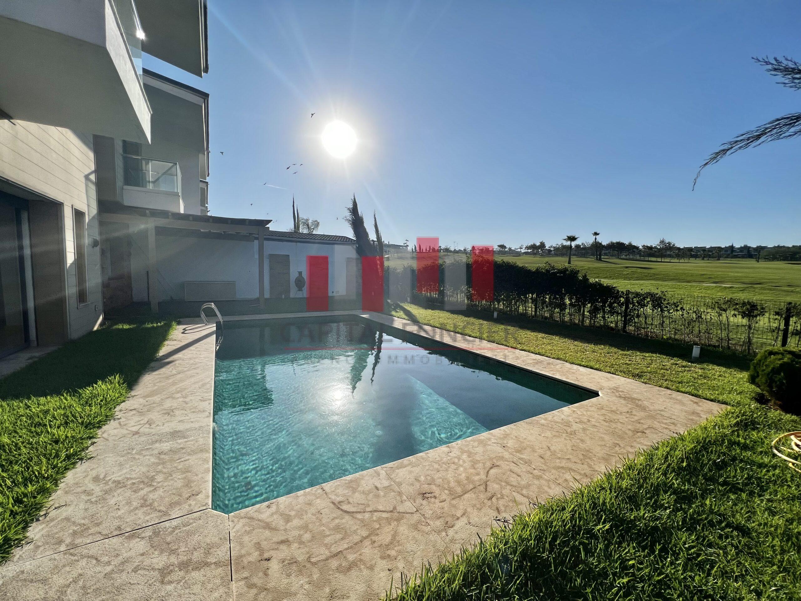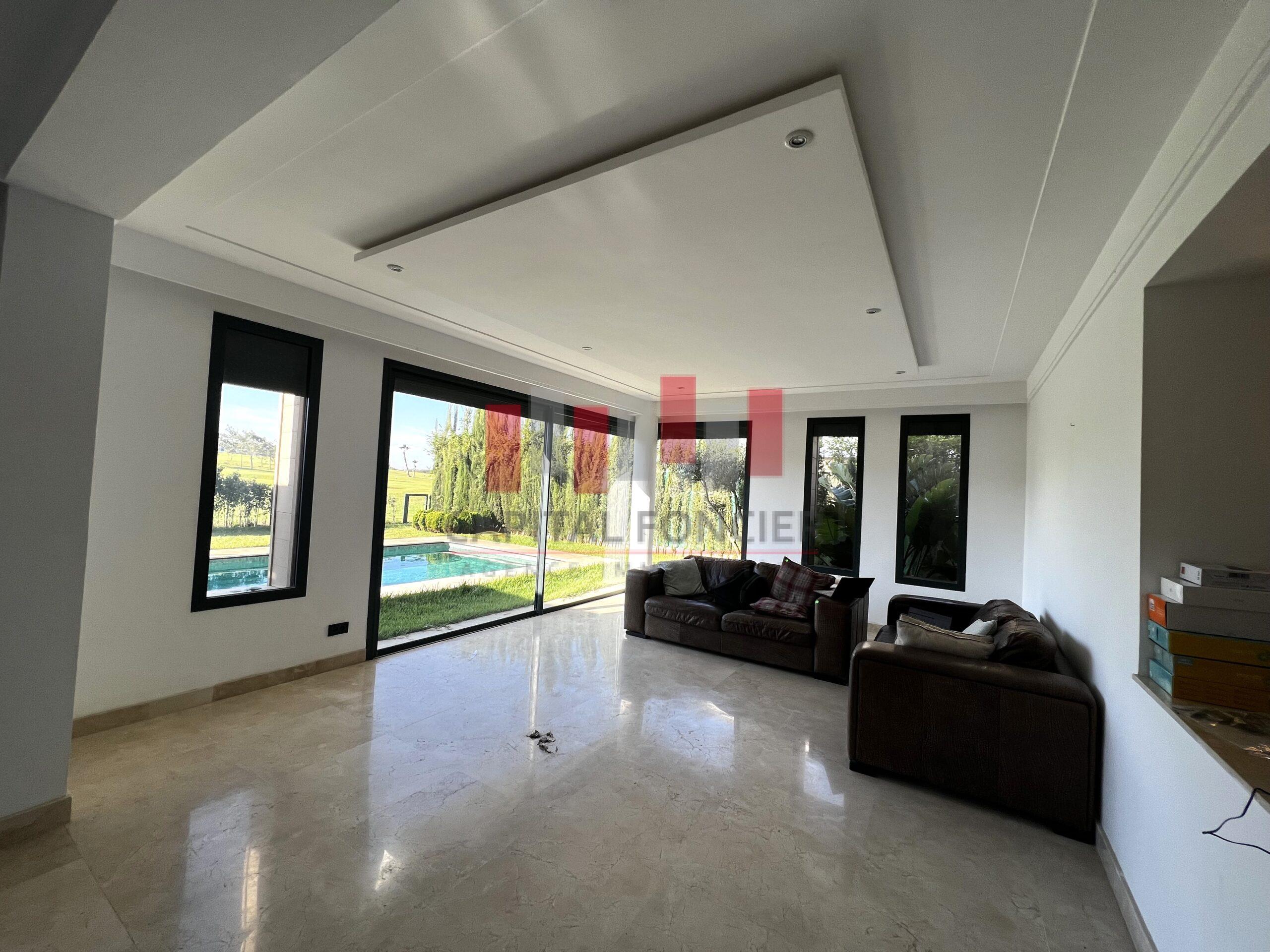 BOUSKOURA – CASABLANCA-VILLE VERTE – LOCATION D’UNE SUPERBE VILLA FRONT GOLF – 4 CHAMBRES – PISCINE