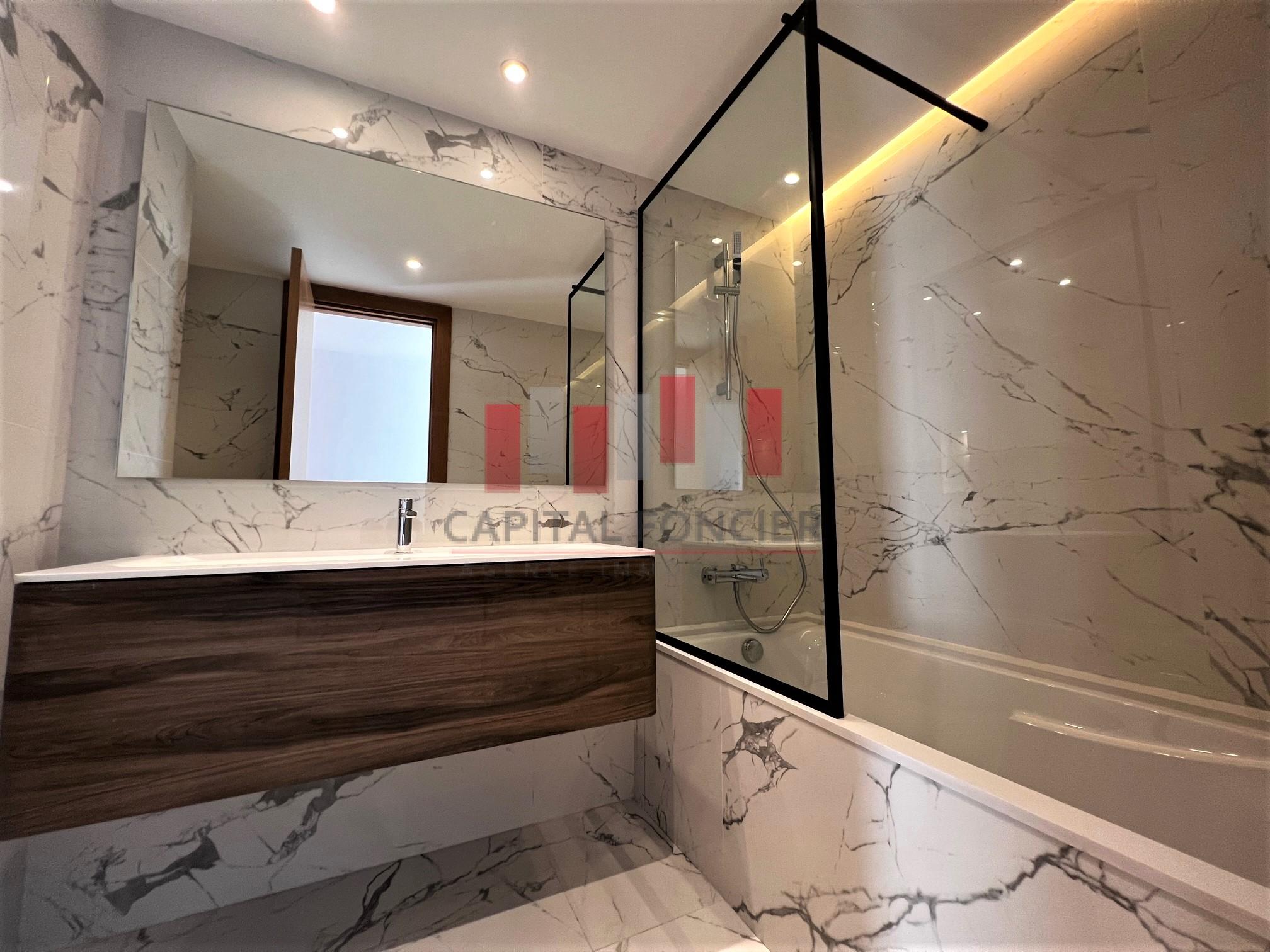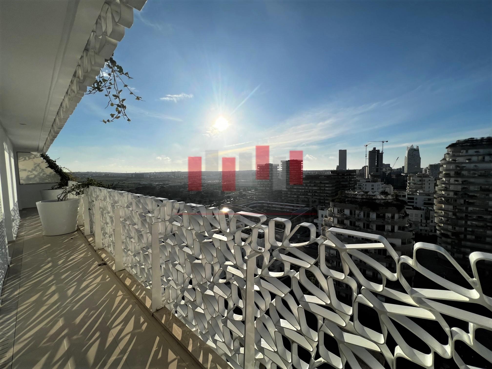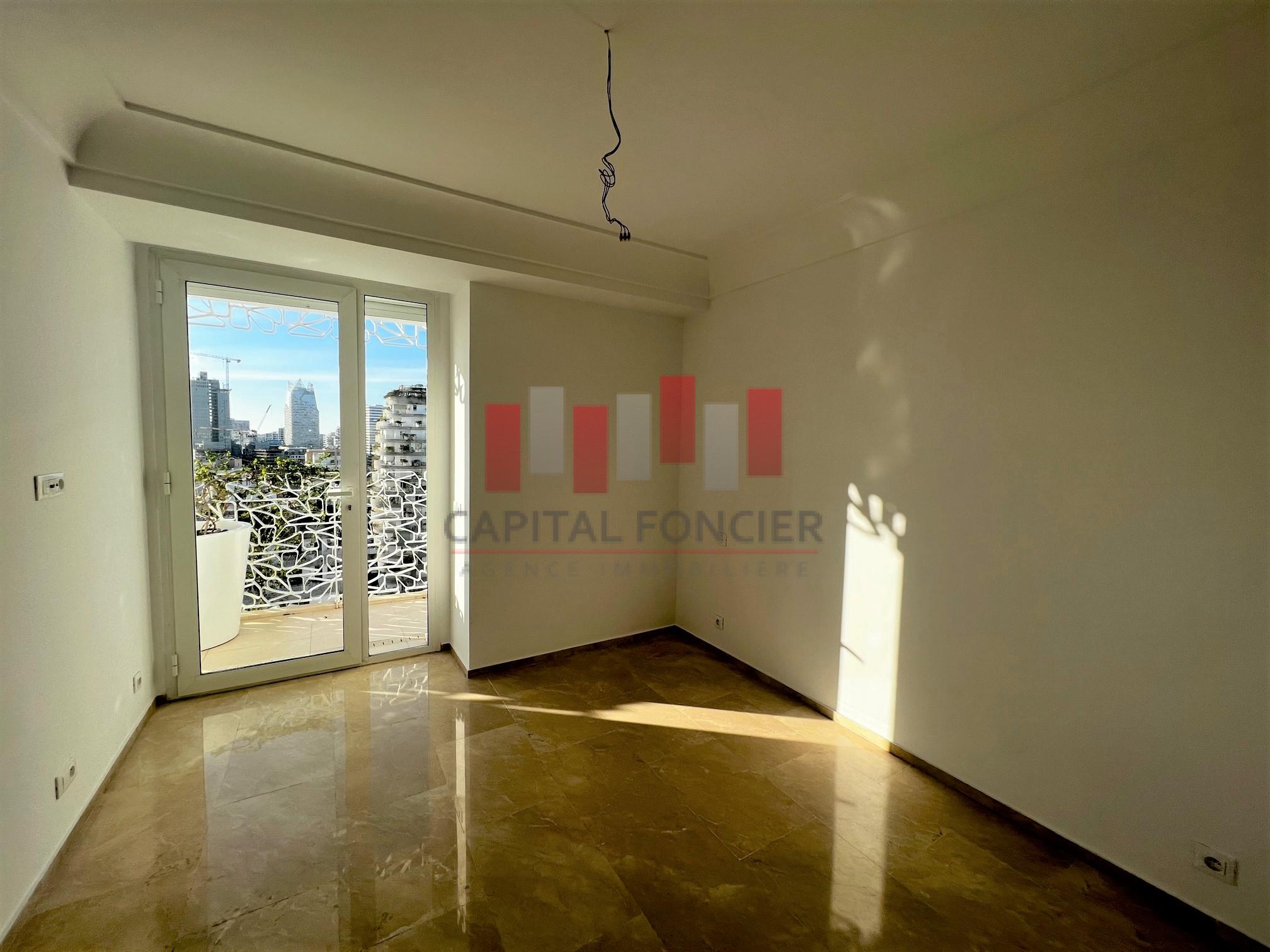 Au cœur du nouveau centre névralgique de la ville, à 2 minutes du CIL et à proximité immédiate des axes de dessertes, écoles et commerces, location d’un superbe appartement non meublé neuf avec grande terrasse.