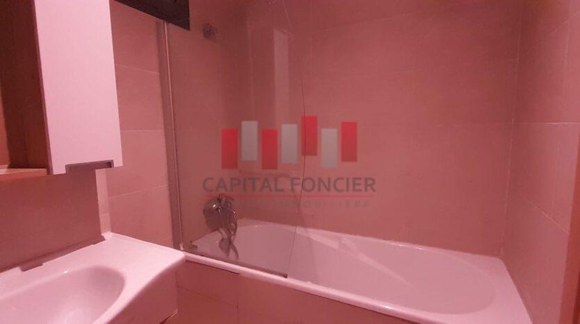 Il se compose d’un salon spacieux, une cuisine donnant sur un espace buanderie, deux chambres à coucher avec salle de bain attenante et une suite parentale avec une salle de bain avec baignoire.