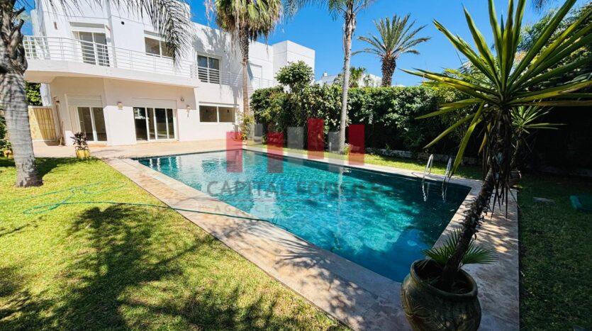 CALIFORNIE : Très belle villa dans une résidence sécurisée d’une superficie de 500 m2 avec un beau jardin et une belle piscine. elle se compose d’un double salon avec espace cheminée, d’une cuisine, de 4 chambres dont une suite parentale dont une mezzanine, 3 SDB, chambre du personnel au sous sol. Chauffage centrale et climatisation réversible.