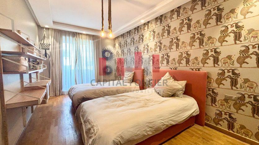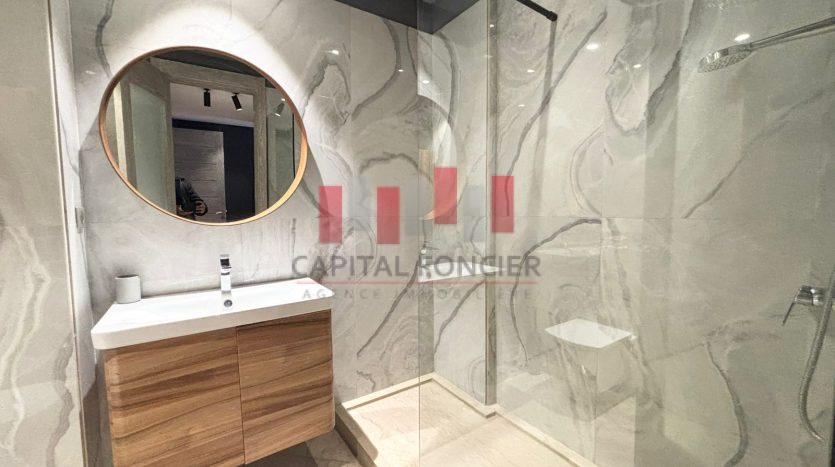 Il se compose d’un grand salon avec espace salle à manger donnant sur un grand balcon, un wc invité, une belle suite parentale avec dressing et salle de bain, deux autres chambres à coucher avec salle de bain attenante, une cuisien avec coin repas et un espace buanderie ou pouvant être aménagé en chambre du personnel, avec un débarras.