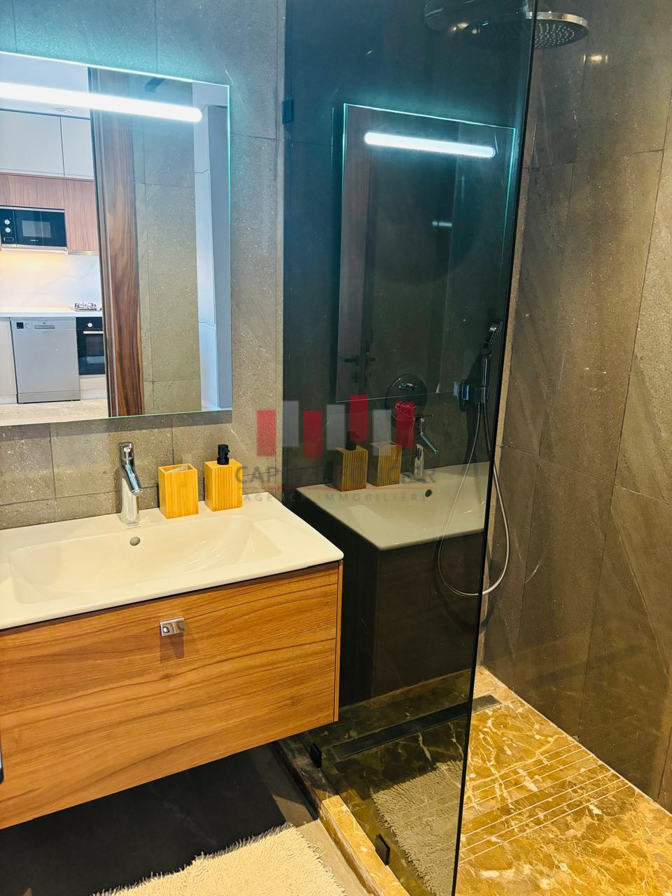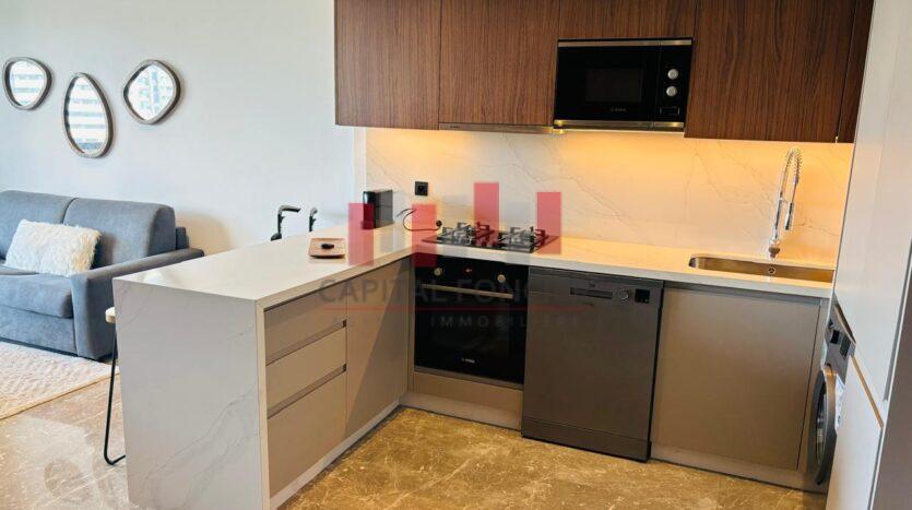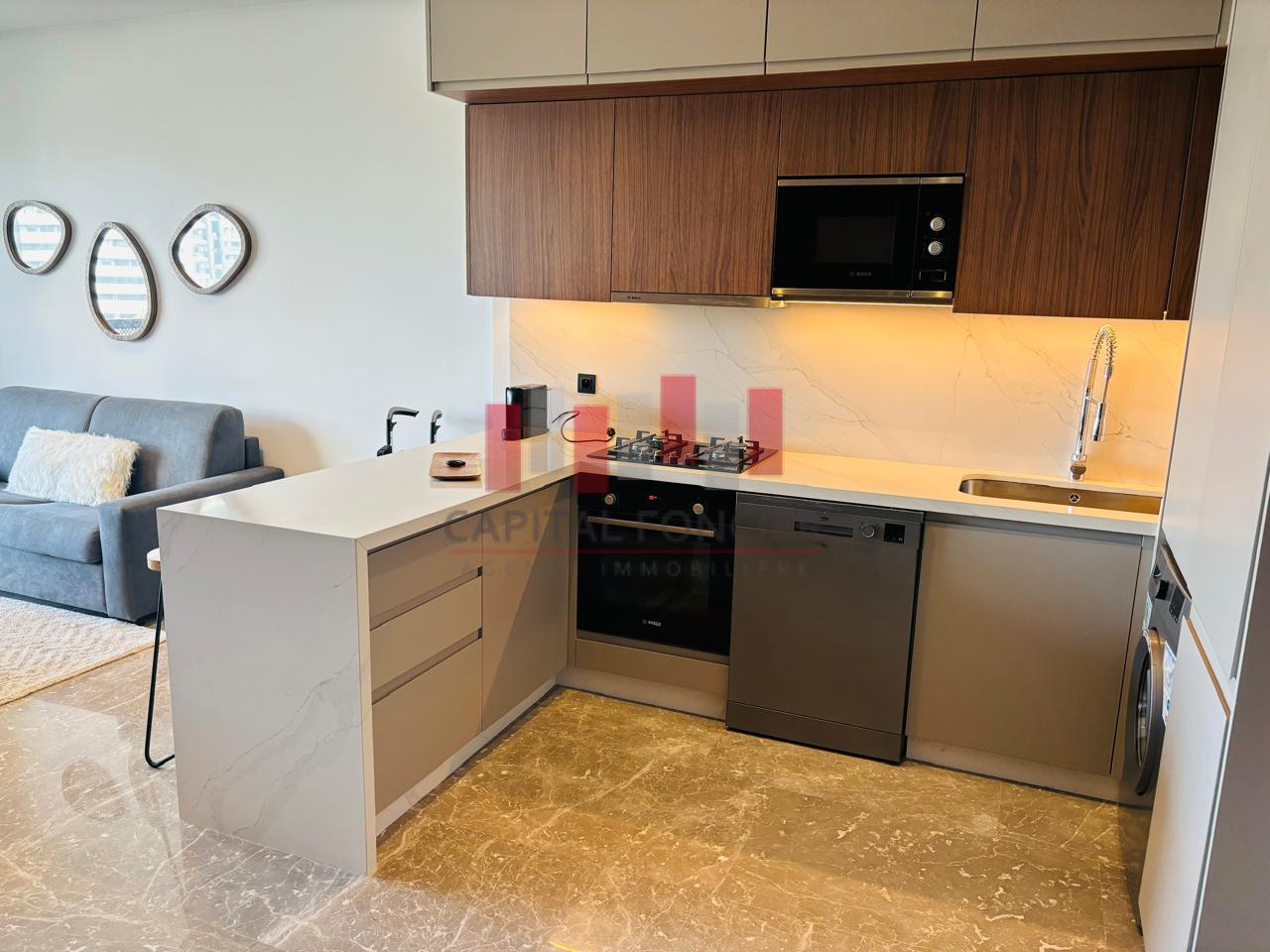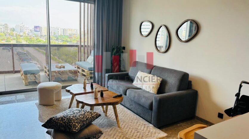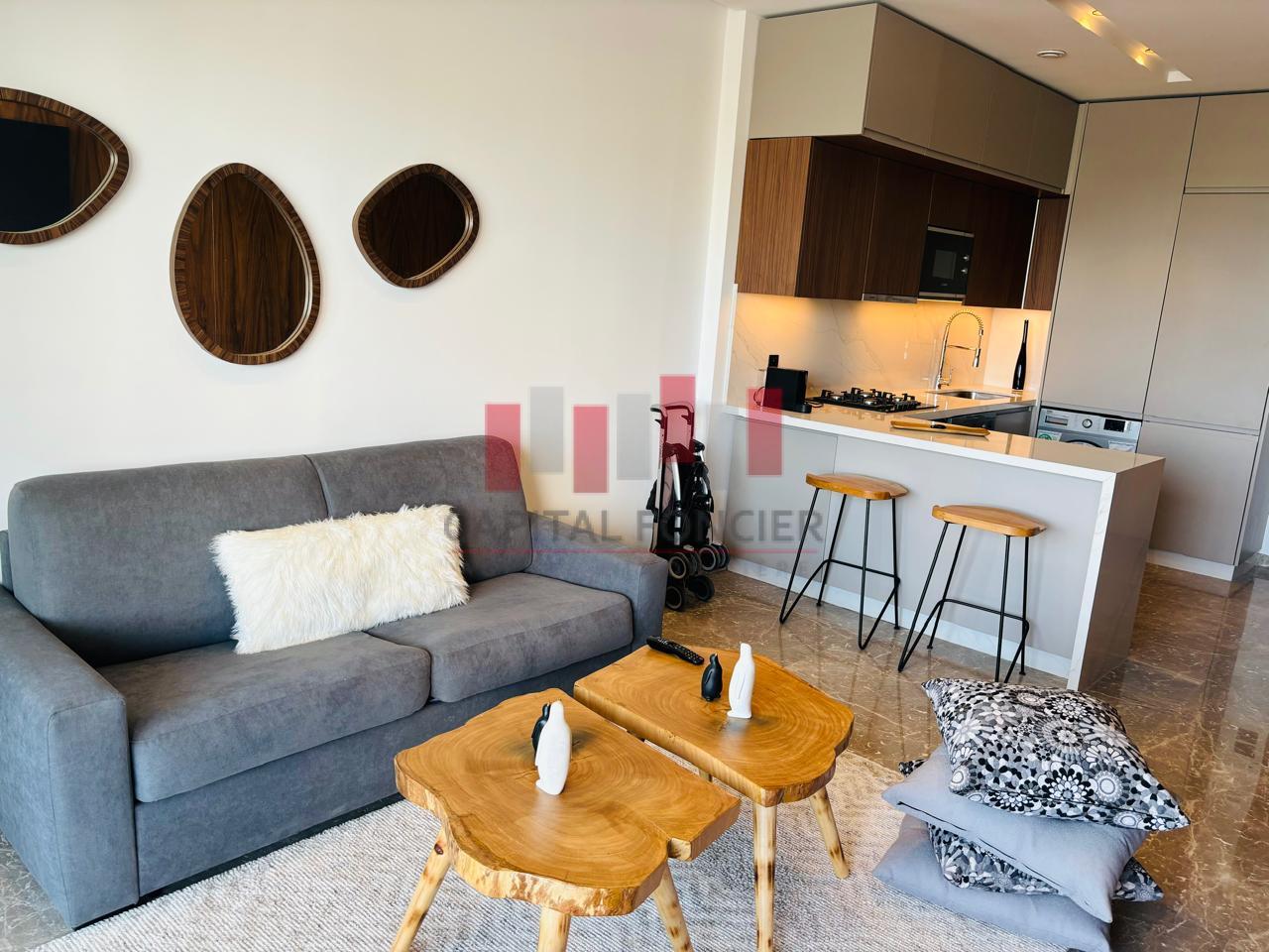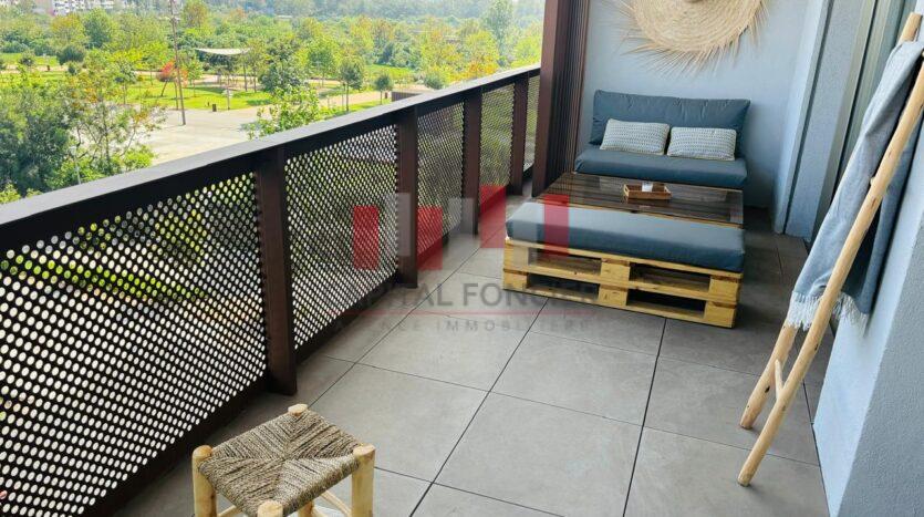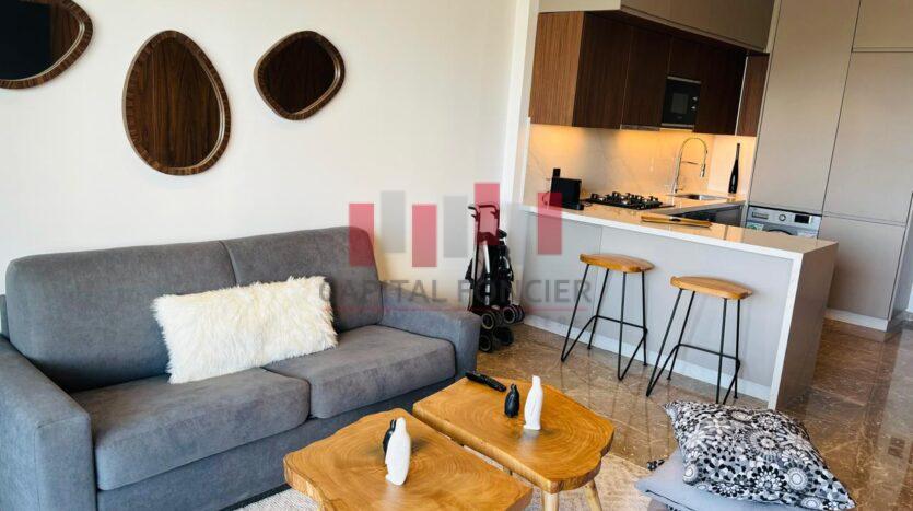 CFC : Appartement neuf moderne meublé totalement équipée d’une superficie de 63 m2 dont 13 m2 de terrasse. Il se compose d’un salon, d’une cuisine américaine, d’une chambre à coucher muni d’un grand dressing, d’une SDB, climatisation réversible, domatique, place de parking titrée.