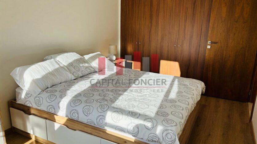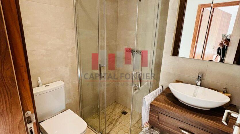 appartement meublé moderne d’une superficie de 70 m2 plus 15 m2 de terrasse. il se compose d’une entrée, d’un salon, d’une cuisine américaine entièrement équipée, d’un petit balcon attenant au salon, de deux chambres avec dressing, d’une salle de bain, d’une buanderie avec une cuisine d’appoint, climatisation  sécurité 24/24, place de parking titrée.