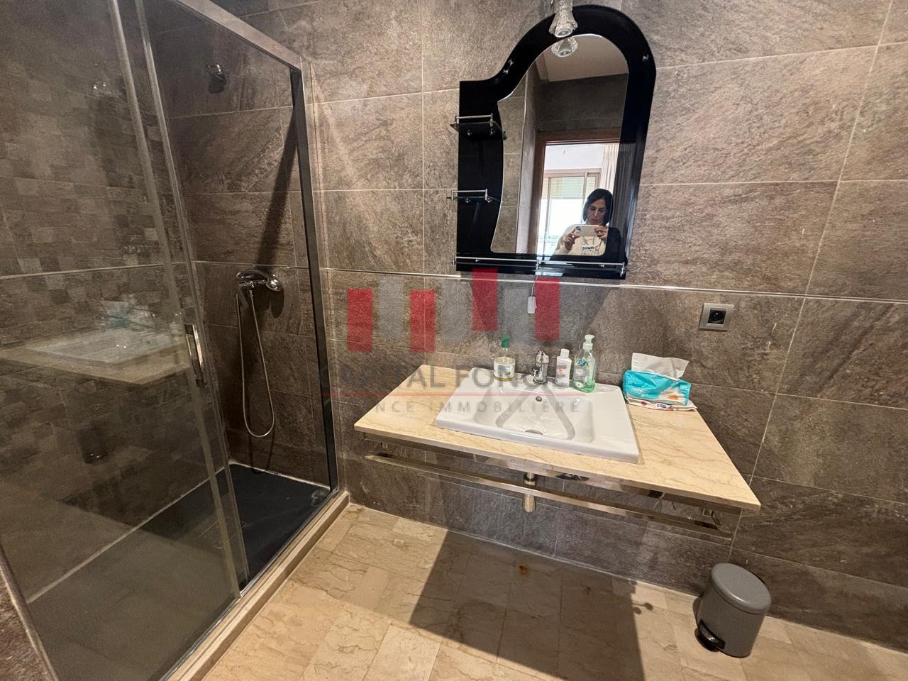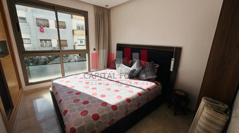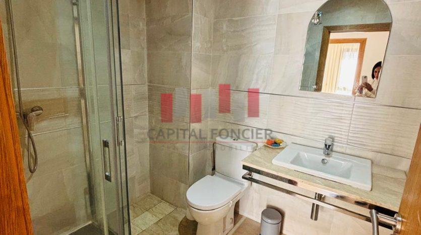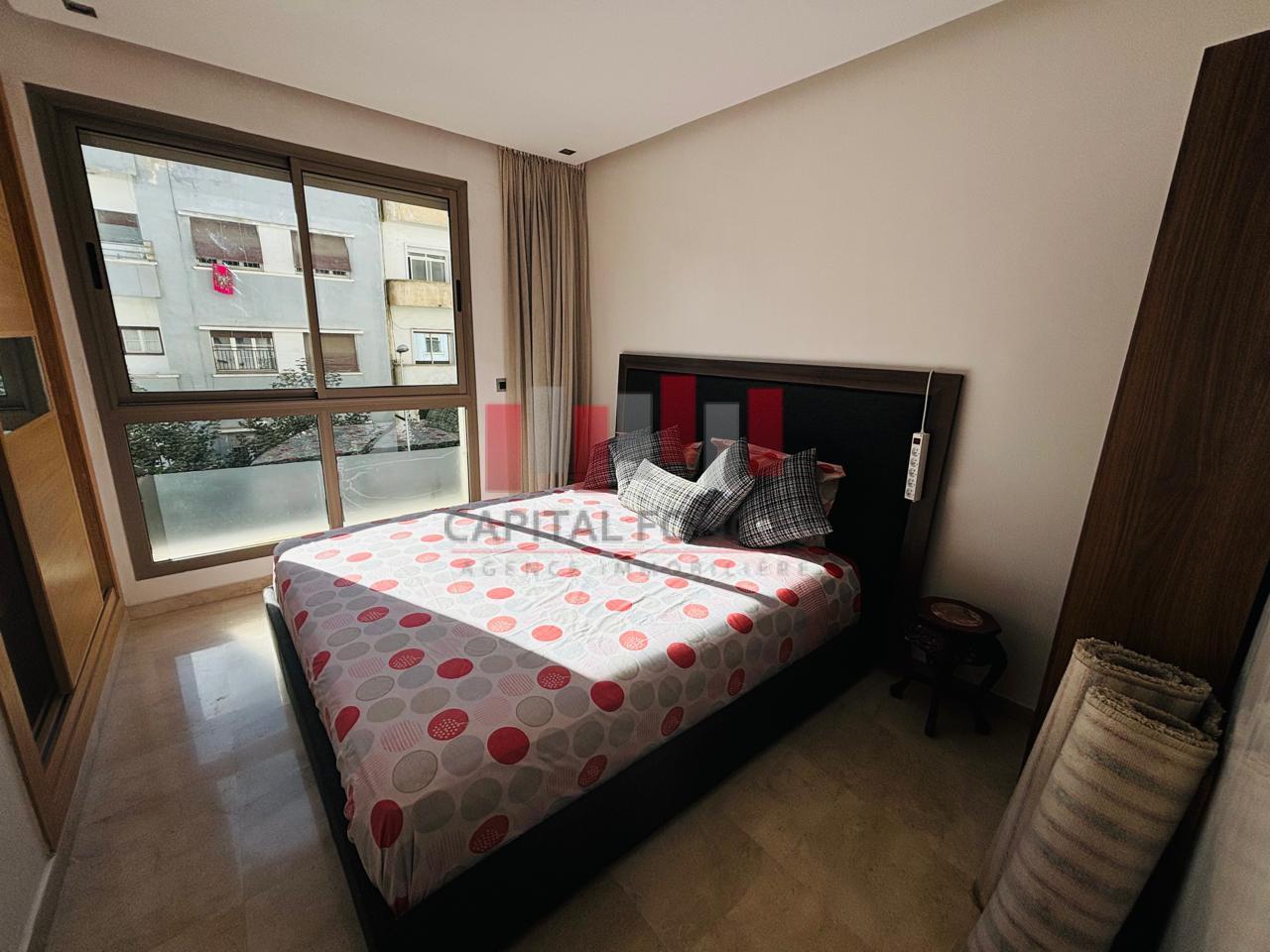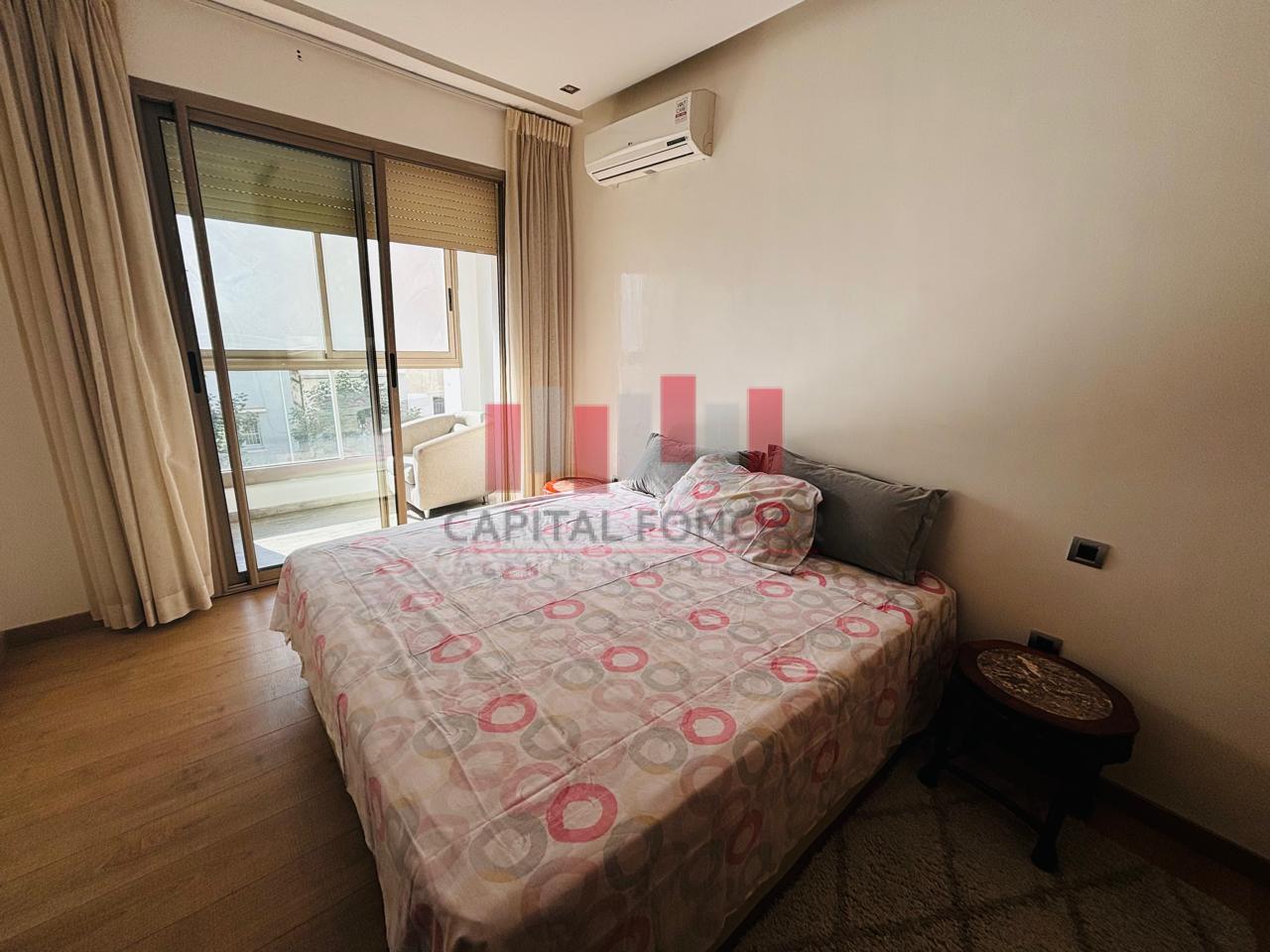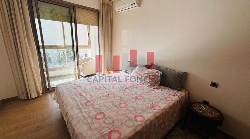 MAARIF EXTENSION : Appartement meublé en étage élevé très ensoleillé d’une superficie de 135 m2 proche de tous les commerces et commodités. Il se compose d’un salon, d’une cuisine, de 3 chambres dont une suite parentale avec un balcon, de 2SDB, place de parking titrée et climatisation.
