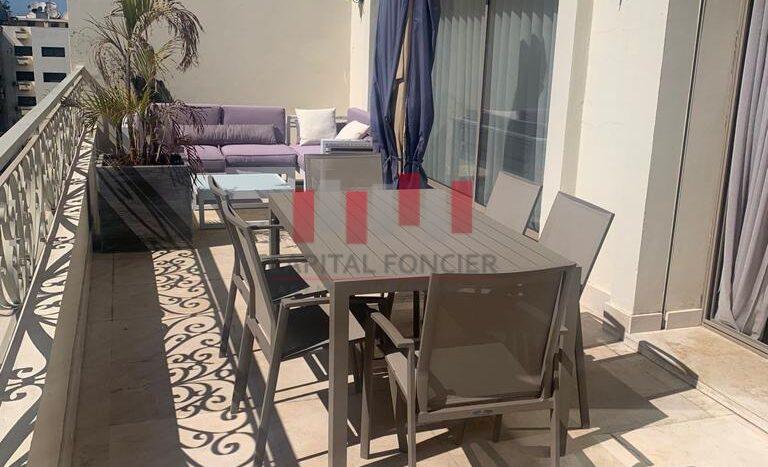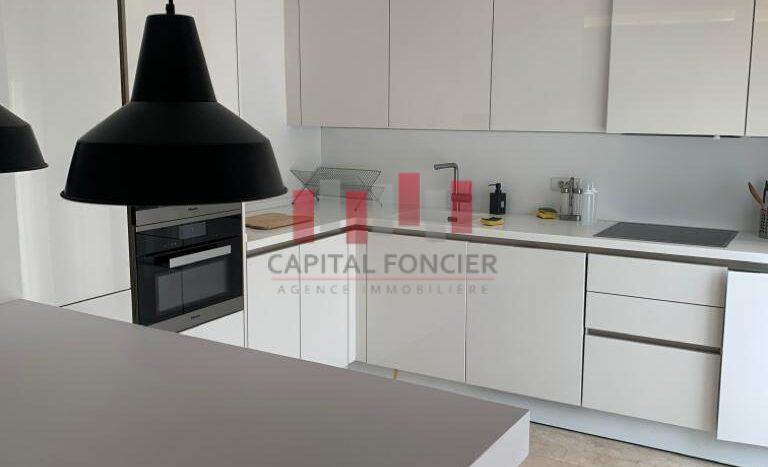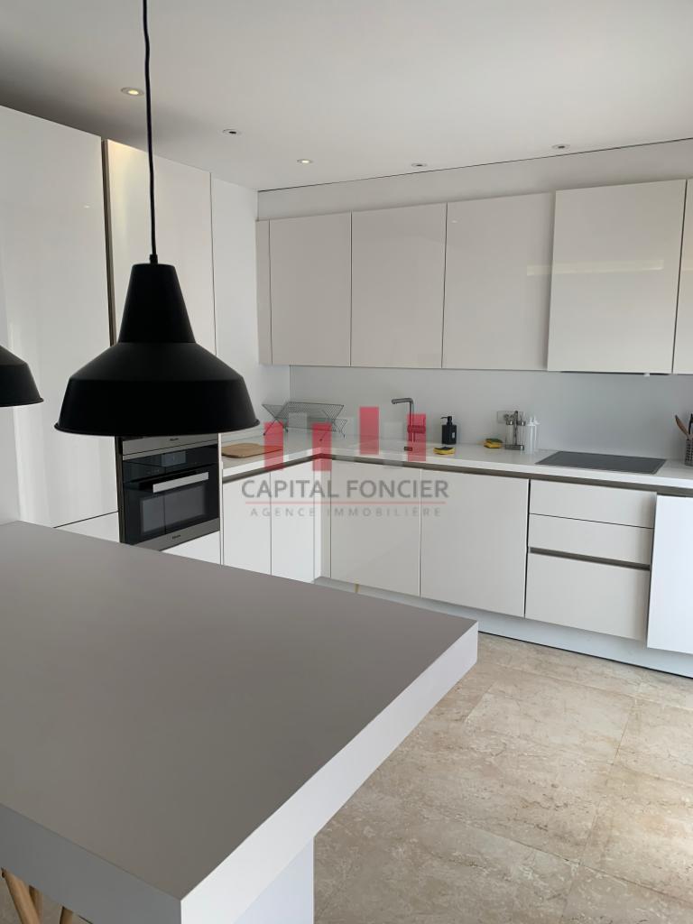 Salon, 2 chambres + 2 sdb, cuisine américaine, terrasse. Superficie total avec la terrasse : 124m2