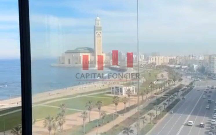 Capital Foncier vous propose à la location une surface de bureaux de 80 m2 en plein bld la corniche , Bien exceptionnel VUE MER , le tout entièrement aménagé . Parties communes de bon standing , Surface en trés bon état d’usage composée d’un grand accueil, un open space , 1 espace serveur, sanitaires / Faux plafond staff ,Climatisation réversible , kitchenette . Pour plus d’info, n’hésitez pas à contacter Driss de Capital Foncier.
