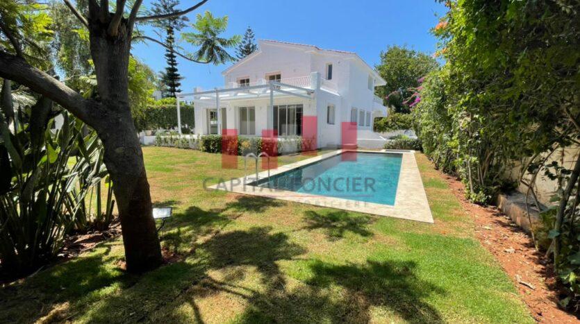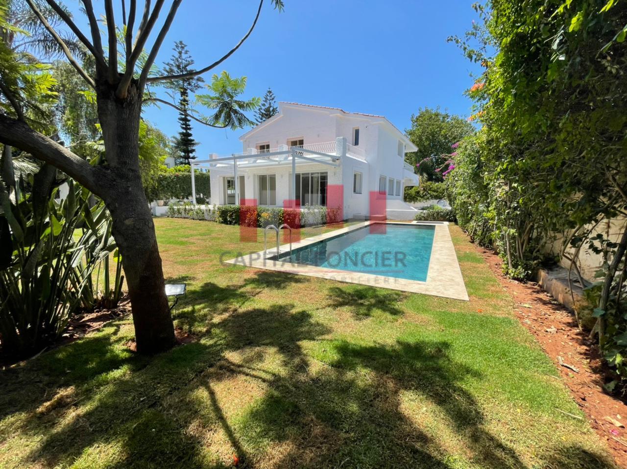 Villa renovée avec grand jardin avec piscine .