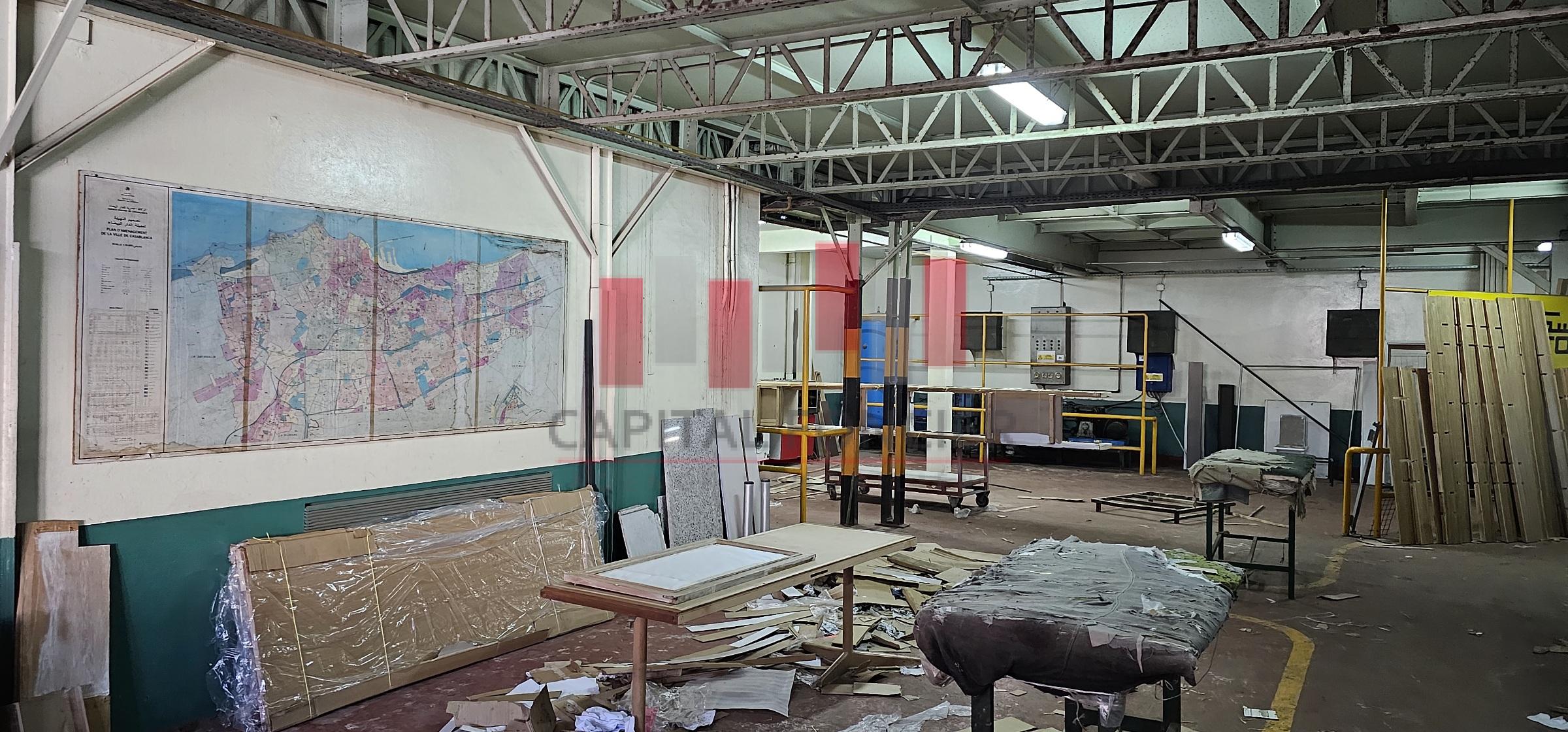 Capital Foncier vous propose une unité  industrielle a ain sebaa de 1800 m de surface atelier se composant comme suit : 940 m de surface en RDC + 860 m de surface en mezzanine ,  Hauteur sous plafond 5 m + vestiaire employés   , Résistance de la dalle 5 T/m² , Sécurité assurée 24/24 7/7 et système anti-incendie complet avec portes coupe-feu, extincteurs et RIA. Puissance électrique : 400KVA . Pour plus d’info, n’hésitez pas à contacter Driss de Capital Foncier au 06 02 97 77 80.