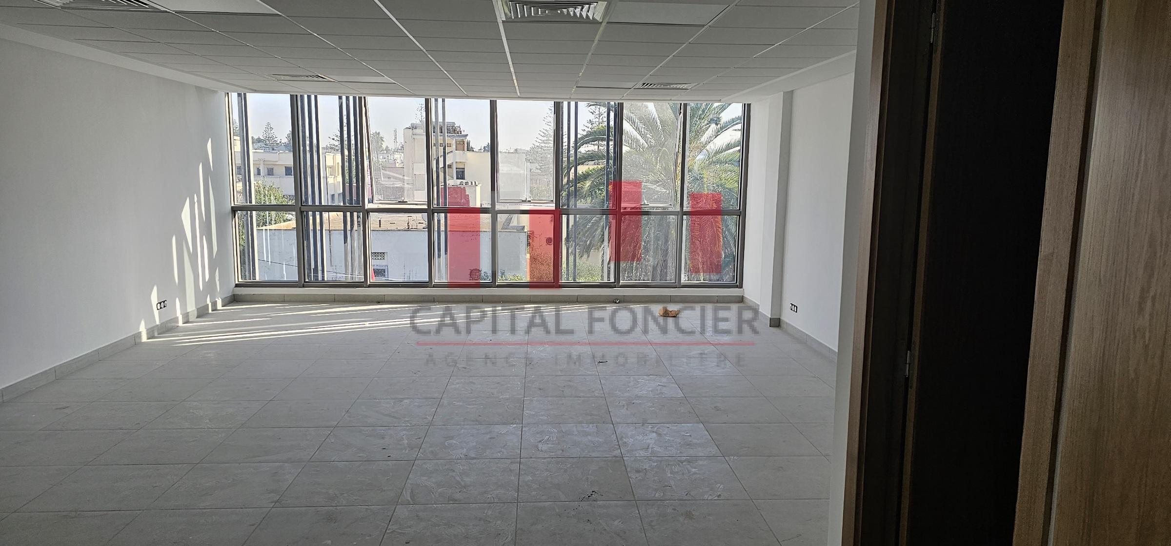 Faux plafond staff ,Climatisation réversible et système réseaux . Ces bureaux sont entièrement aménagés et  et sécurisée avec des cameras de surveillance installées + 2 sous sol de parking dont une capacité de 17 Places  .  Pour + info contacter Mr Driss au 0602977780