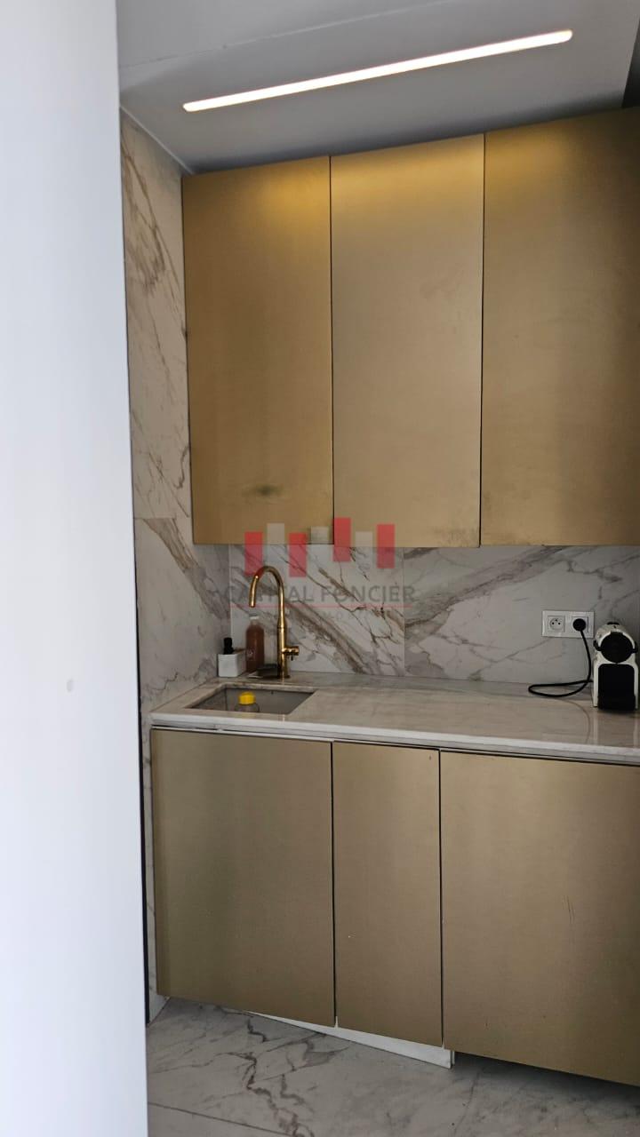 Capital Foncier vous propose un splendide plateau bureau de 85m2 à la location au 9ème étage d’un immeuble à Maarif. Le bien a été refait à neuf par un architecte et propose une finition très haut de gamme ainsi que du mobilier de luxe. Il est composé d’un accueil, un espace bibliothèque, une salle de réunion, un open space pour 5 personnes, un bureau DG avec un coin bureau et un petit salon avec espace de projection, 1 kitchenette. Pour plus d’infos contactez Mourad