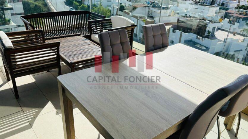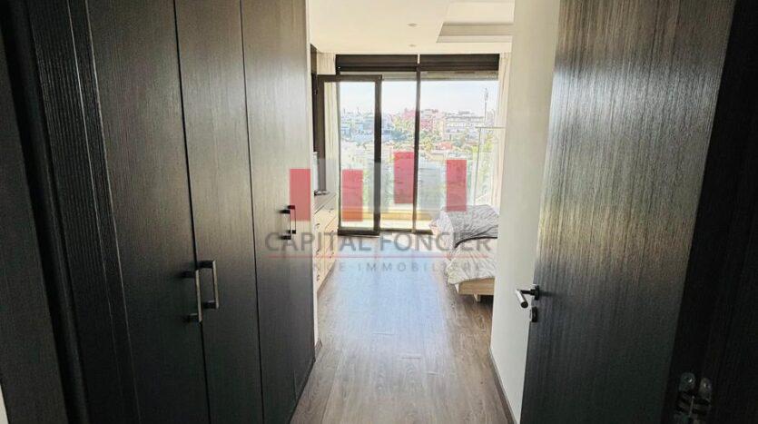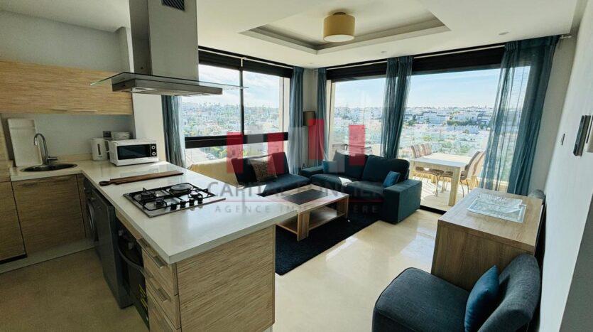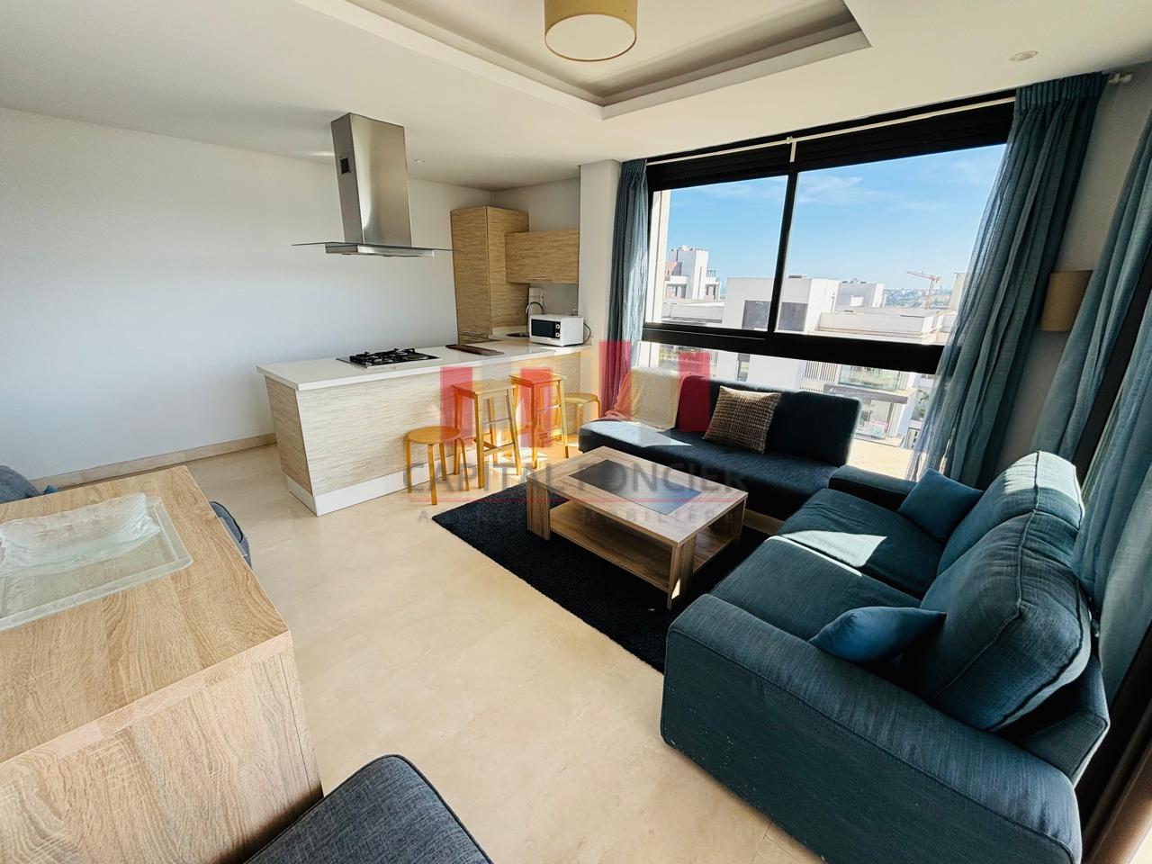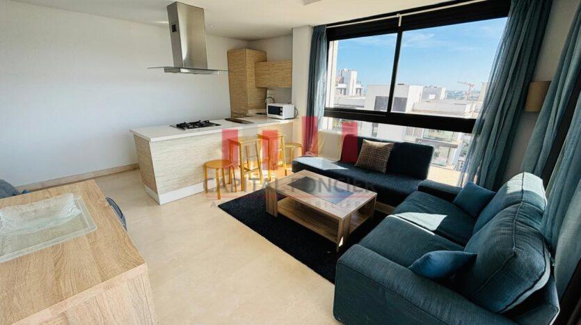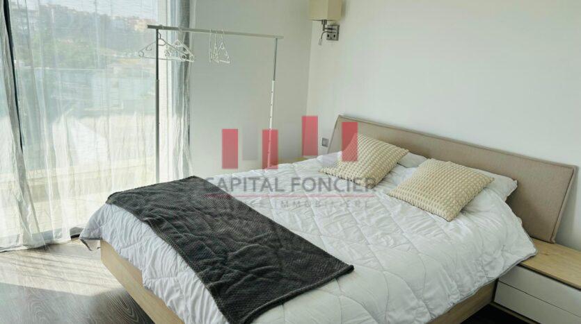 AIN DIAB : Joli meublé moderne totalement équipée dans une résidence sécurisée sans vis à vis très ensoleillé d’une superficie de 70 m2 dont 11 m2 de terrasse. Il se compose d’un salon avec une cuisine américaine, d’une terrasse de 11 m2, d’une chambre avec espace de rangements, 1 SDB, c climatisation centralisée, domotique, place de parking titrée.