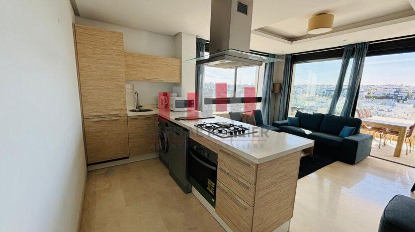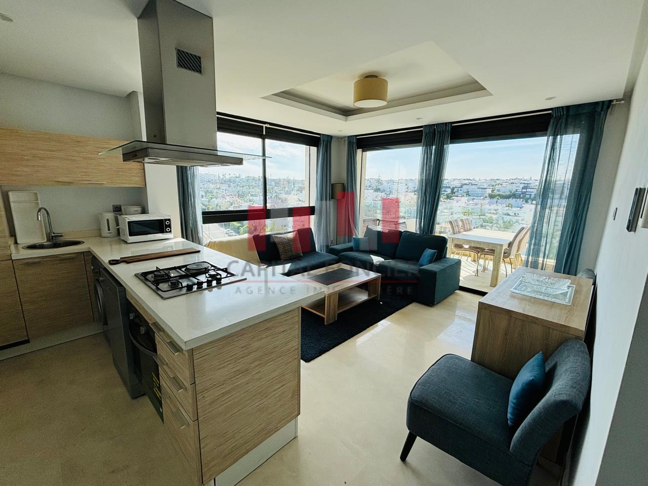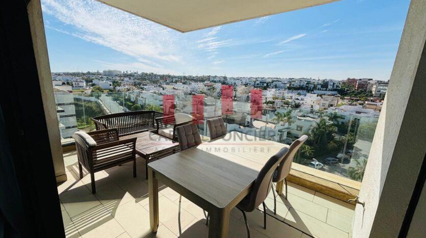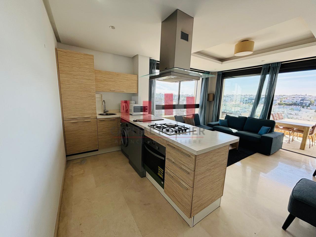AIN DIAB : Joli meublé moderne totalement équipée dans une résidence sécurisée sans vis à vis très ensoleillé d’une superficie de 70 m2 dont 11 m2 de terrasse. Il se compose d’un salon avec une cuisine américaine, d’une terrasse de 11 m2, d’une chambre avec espace de rangements, 1 SDB, c climatisation centralisée, domotique, place de parking titrée.