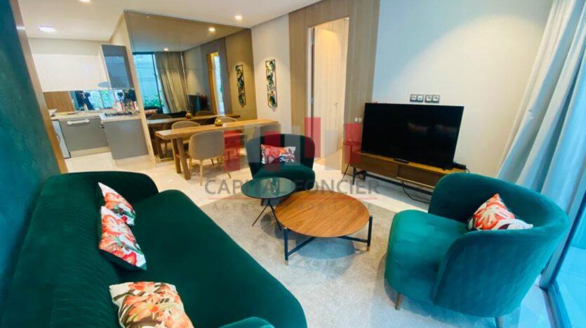 BOURGOGNE : Appartement moderne dans une nouvelle résidence moderne totalement sécurisée. Totalement équipée d’une superficie de 76 m2 dont 24 m2 de terrasse. Il se compose d’un toilette invité, d’un salon, d’une cuisine américaine, d’une suite parentale et sa salle de bain. Climatisation centralisé, place de parking titrée. Proche du Triangle d’or de tous les commerces, commodités….