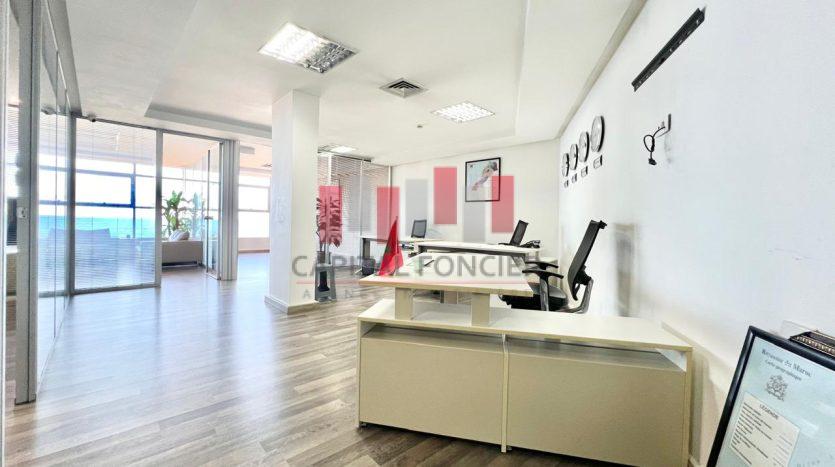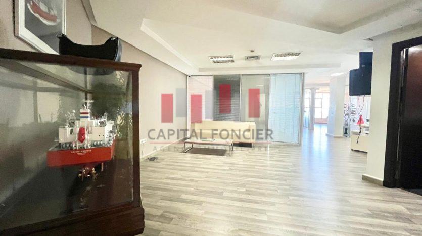 Capital Foncier vous propose à la location une surface de bureaux de 130 m2 PLUG AND PLAY en plein bld la corniche , Bien exceptionnel VUE MER , le tout entièrement aménagé et équipé . Parties communes de bon standing , Surface en trés bon état d’usage composée d’un grand accueil, un open space , 1 espace serveur, sanitaires / Faux plafond staff ,Climatisation réversible , système réseaux et kitchenette . Pour plus d’info, n’hésitez pas à contacter Driss de Capital Foncier au 06 02 97 77 80.