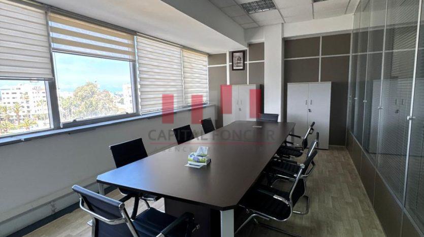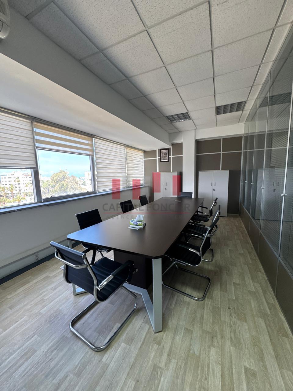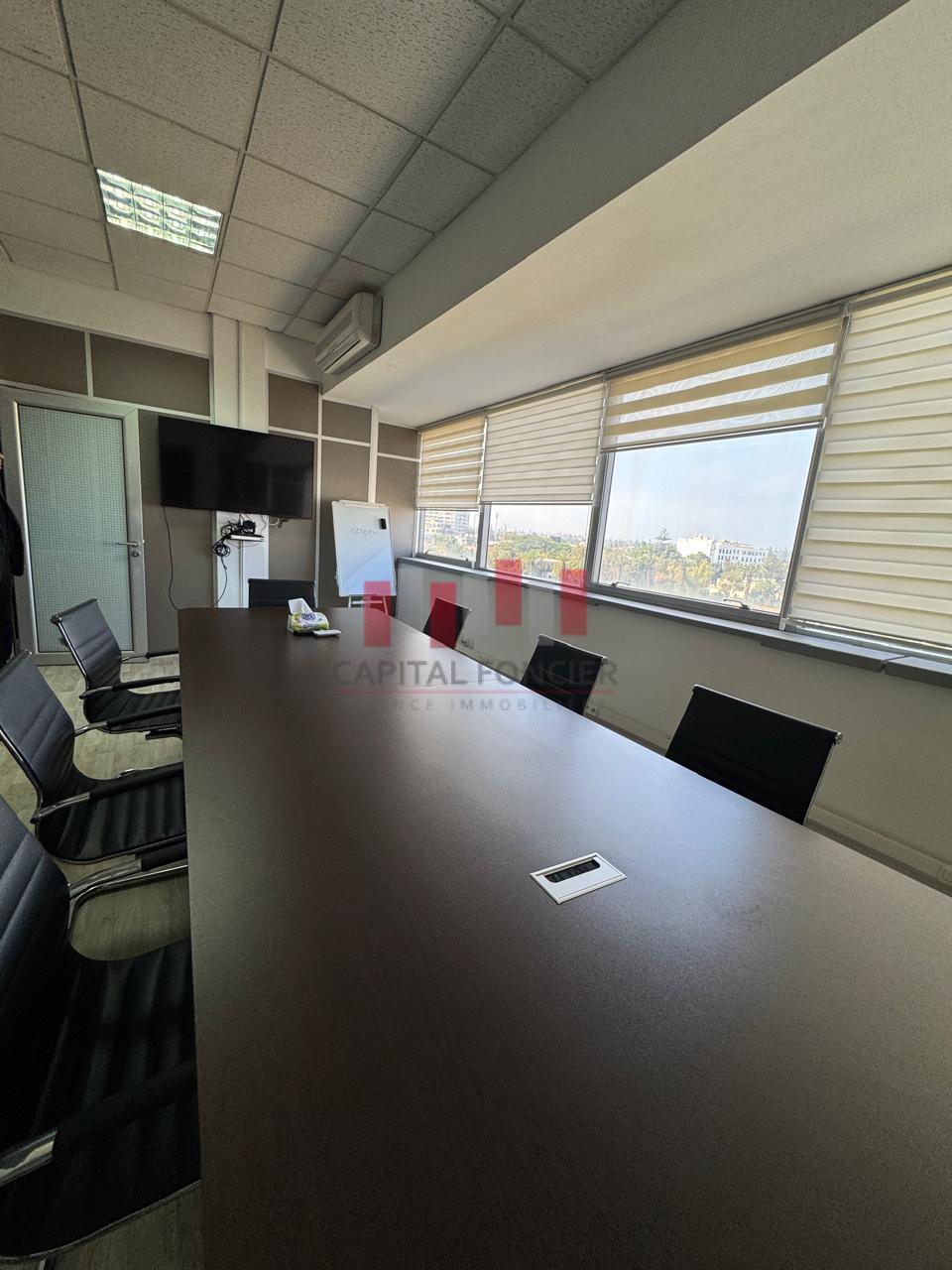 Capital Foncier vous propose à la location une surface de bureaux de 200 m2 en plein quartier ANFA , Bien exceptionnel PANORAMIQUE , le tout entièrement aménagé . Parties communes de bon standing , Surface en très bon état d’usage composée d’un grand accueil, salle d attente , un bureau présidentiel + salle de réunion + open space + , 1 espace serveur, sanitaires / Faux plafond staff ,Climatisation réversible , système réseaux et kitchenette + place de parking au sous sol . Pour plus d’info, n’hésitez pas à contacter Driss de Capital Foncier .