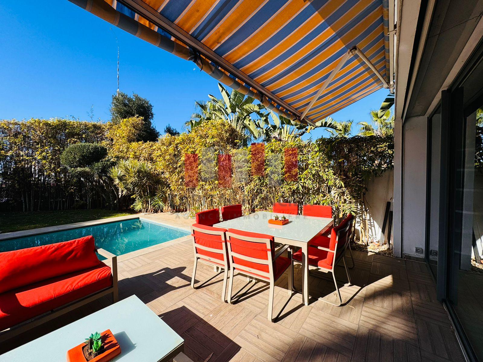 Villa semi meublée plein soleil et calme . Traversant dans belle ruelle totalement sécurisée. Triple séjour 4 chambres 3 salles de bains . Terrasses . Dressing sous sol avec chambre personnel. Solarium au toit avec belle vue . Garage. Chauffage centrale climatisation parquet massif