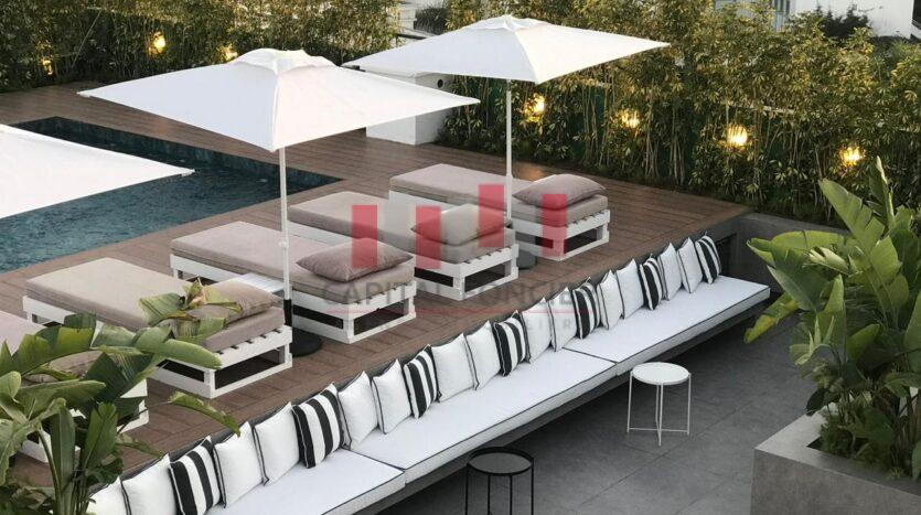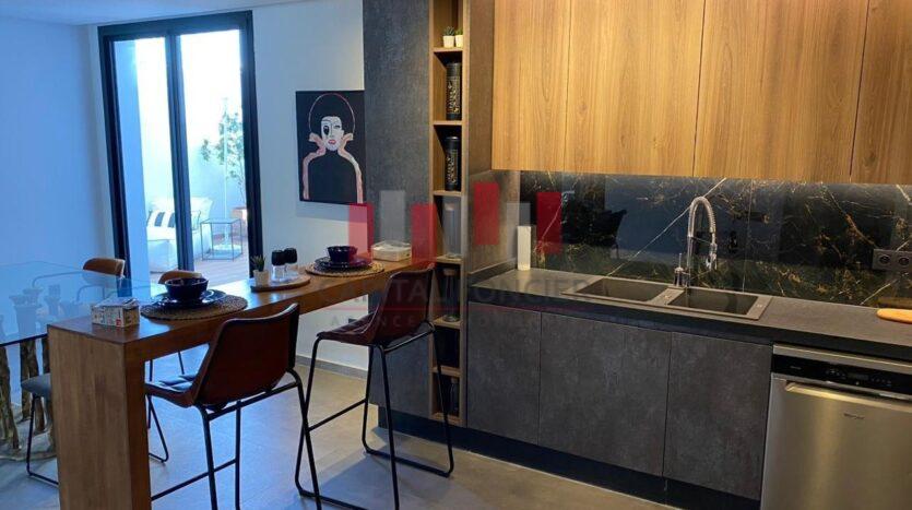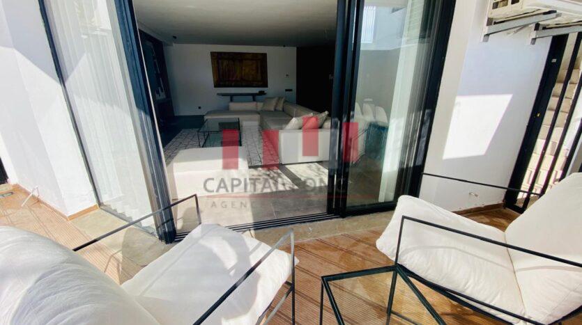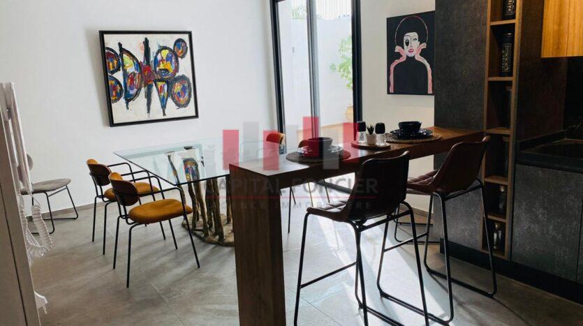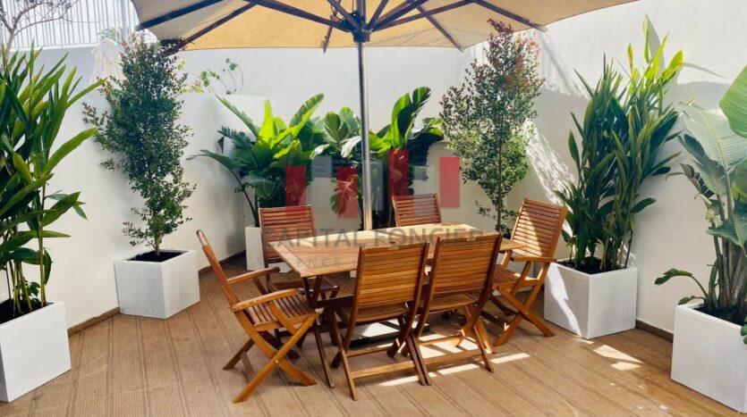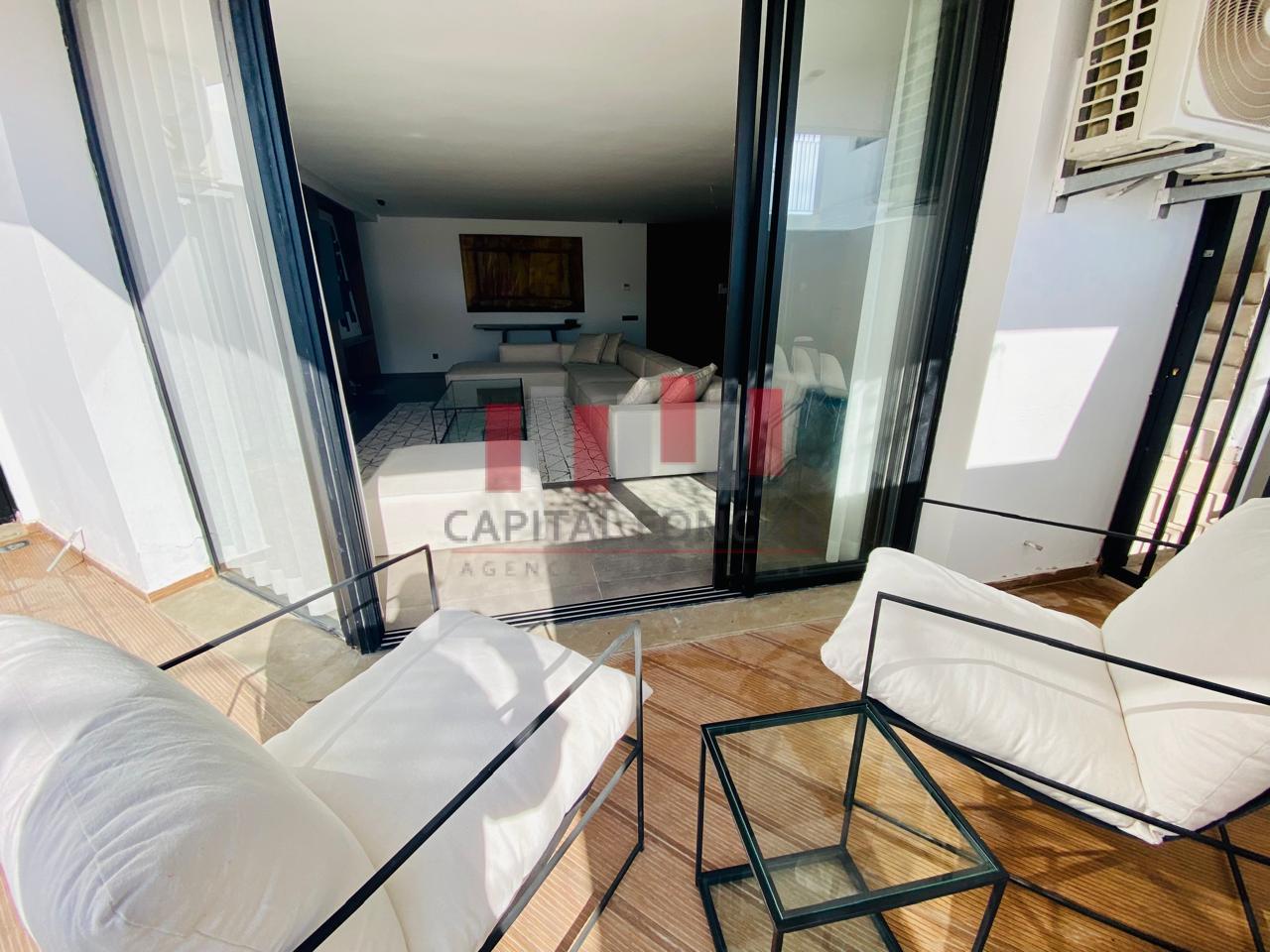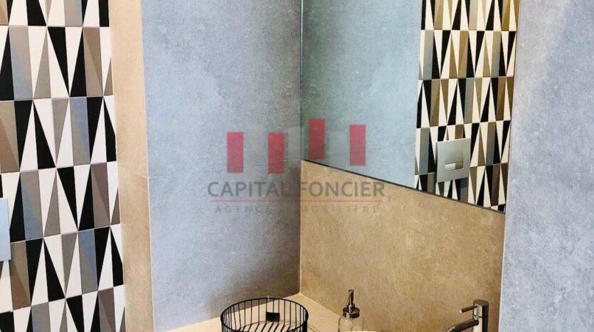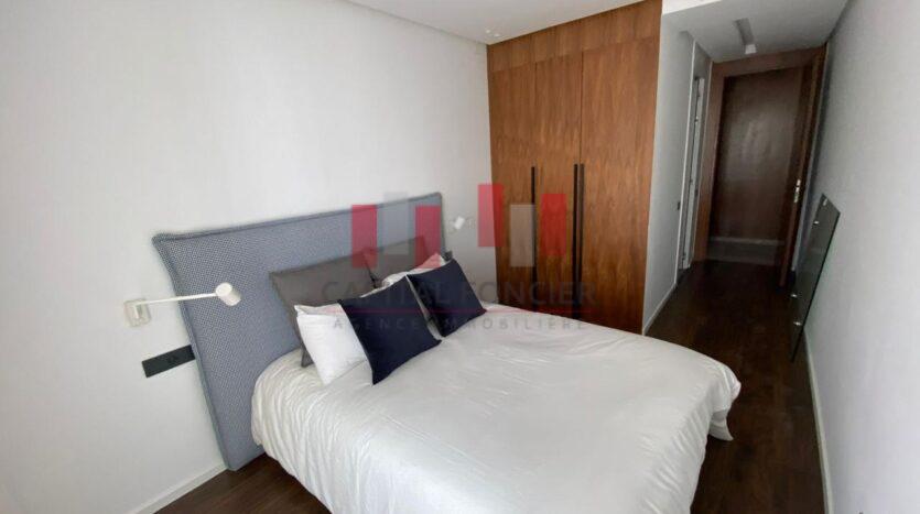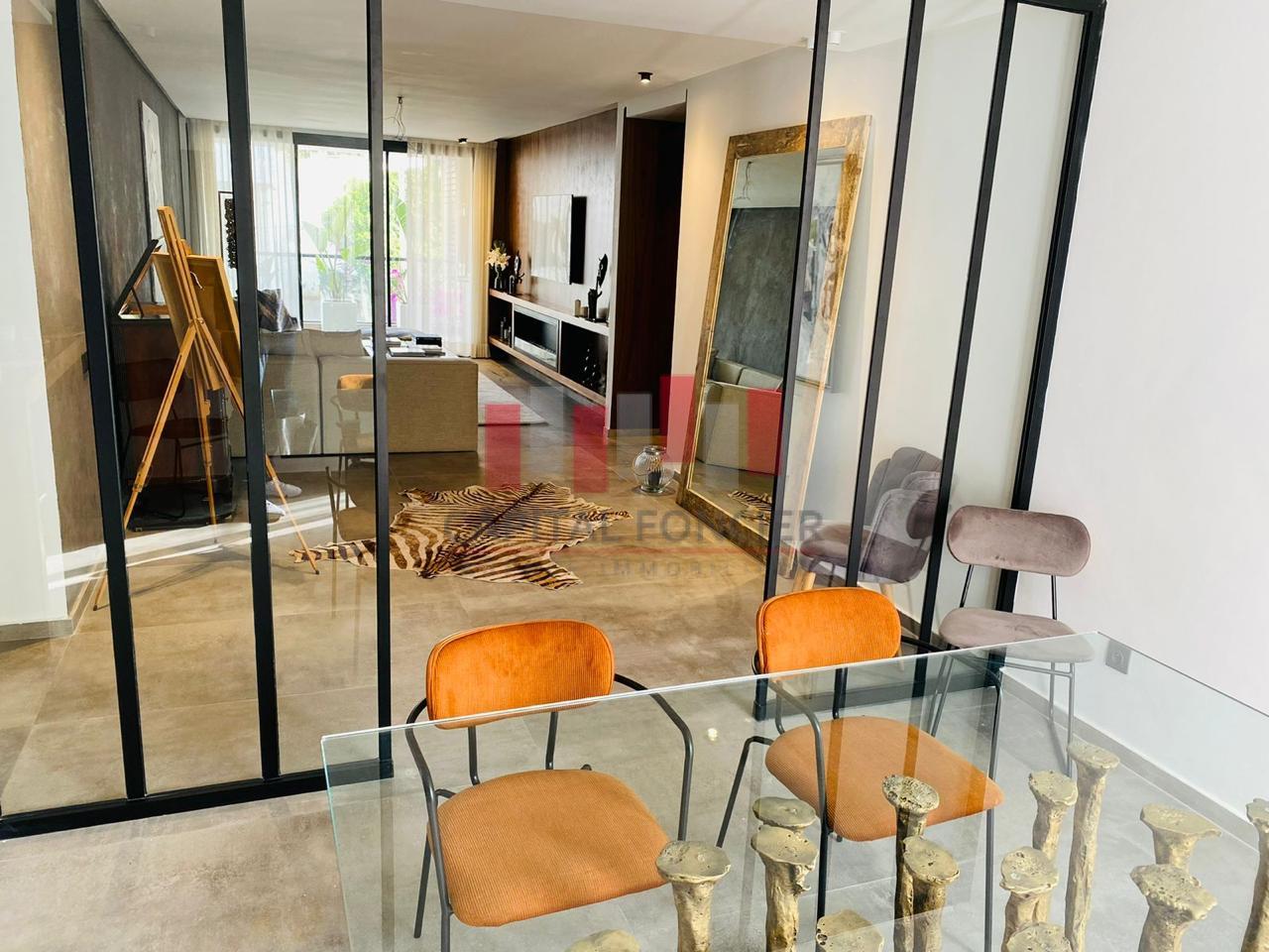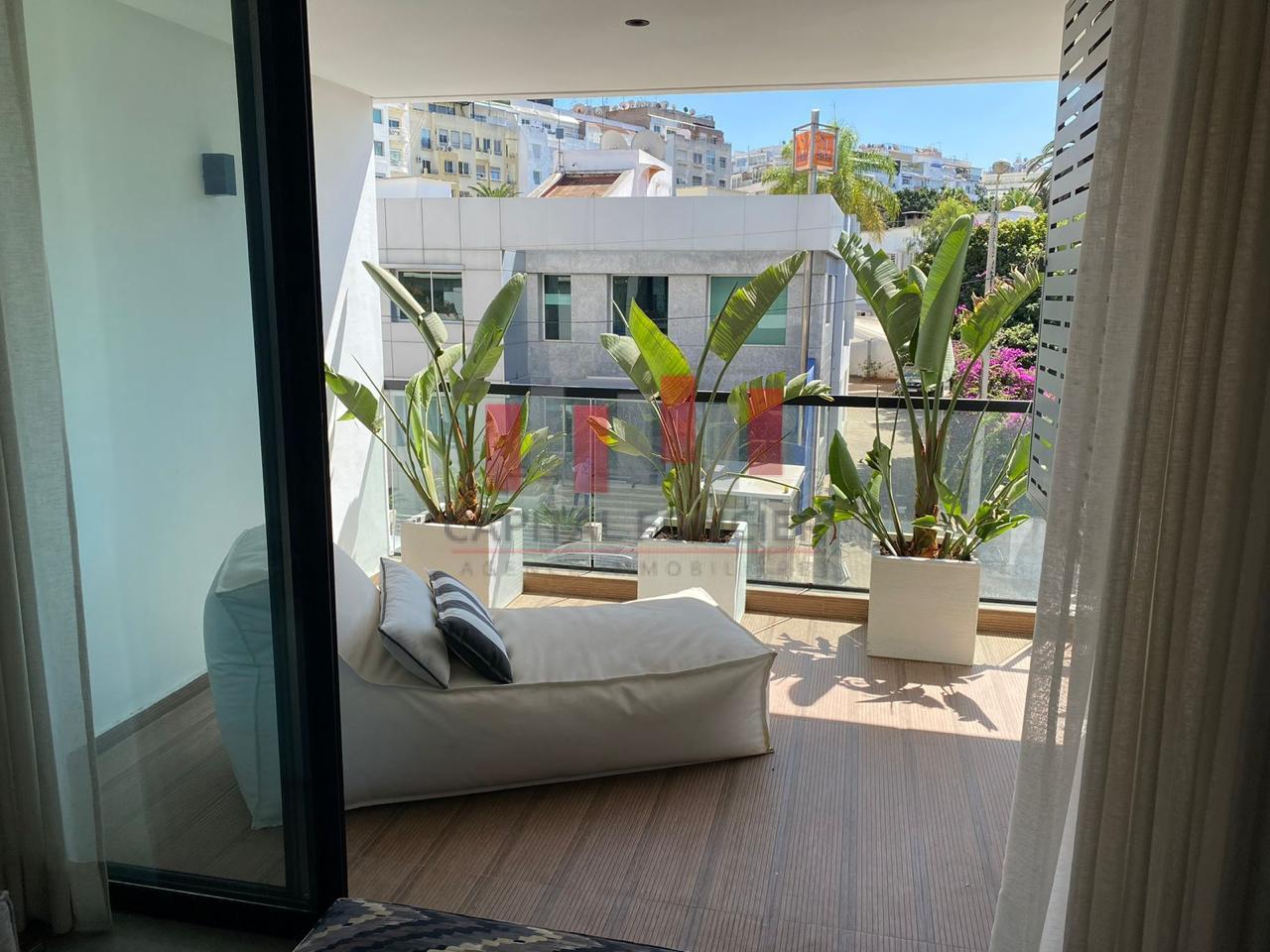 PALMIERS : Appartement meublé sublime dans une belle résidence de haut standing avec un Roof top avec piscine et salle de sport d’une superficie de 147 m2 dont 27 m2 de terrasse. Il se compose d’un toilette invité, d’une cuisine semi ouverte attenante à la salle à manger, d’un salon avec une cheminée à l’ethanol, de 2 chambres avec dressing, de 2SDB, Climatisation centralisé, place de parking, prestations haut de gamme. Unique à Casablanca.