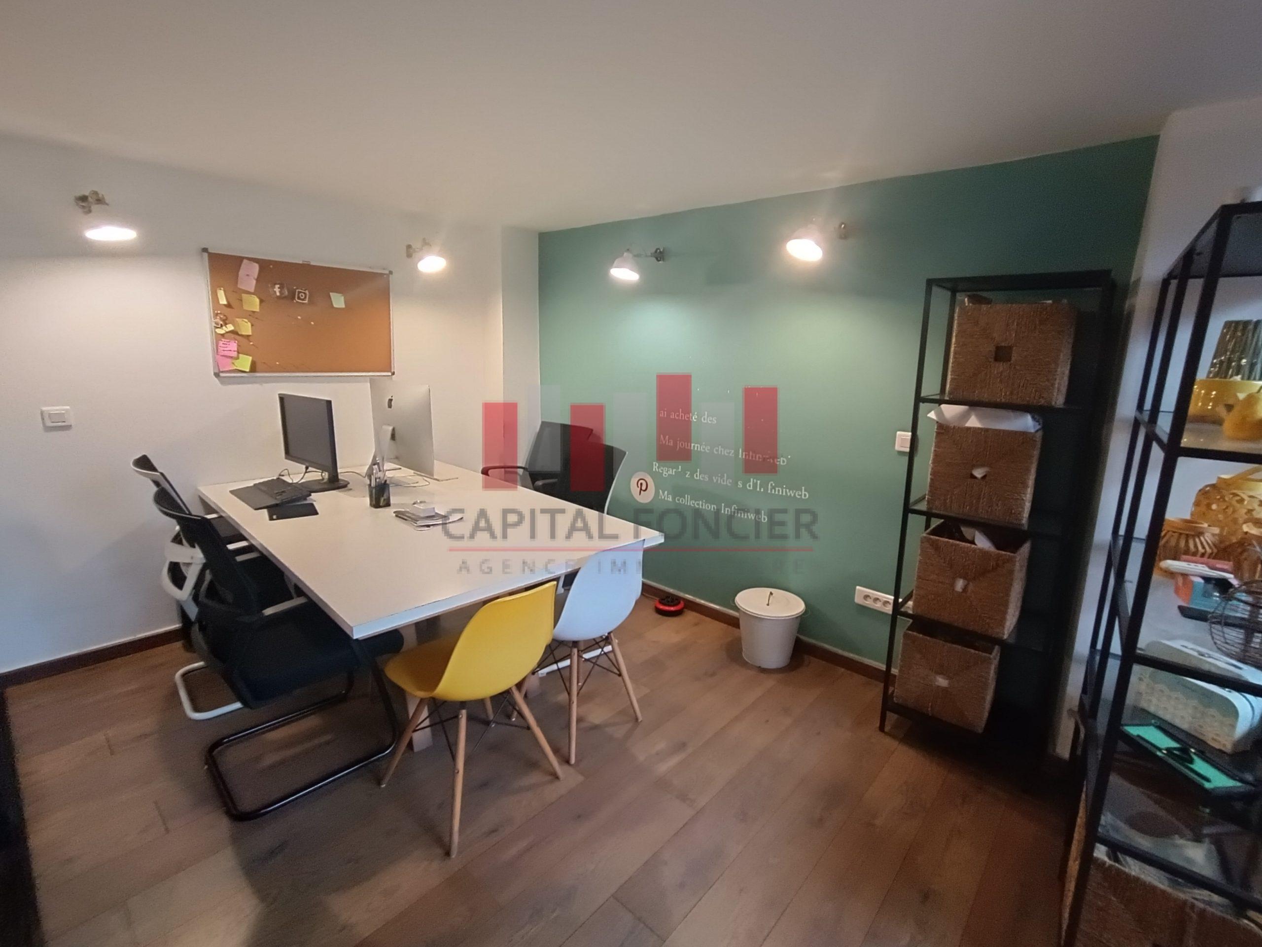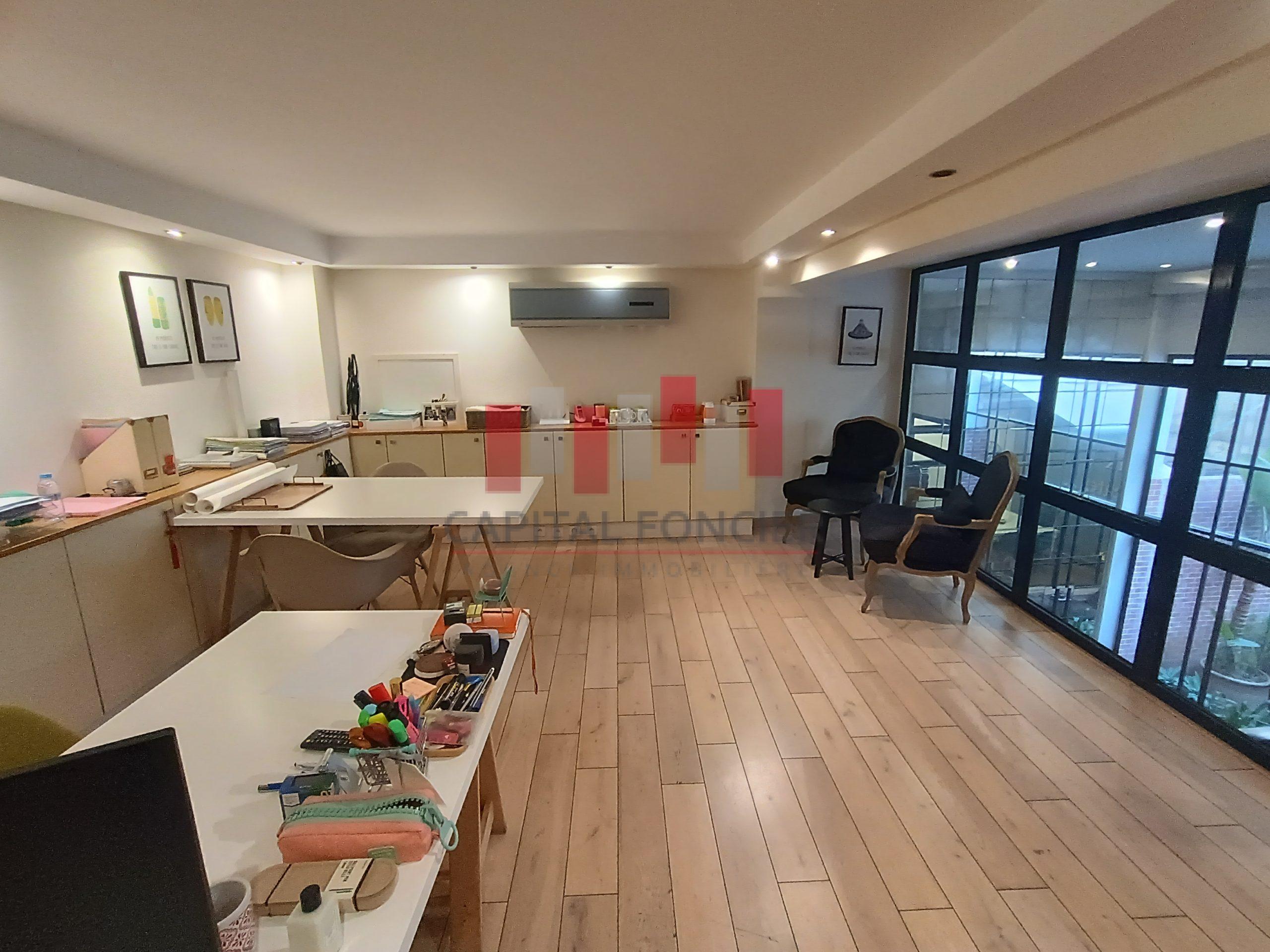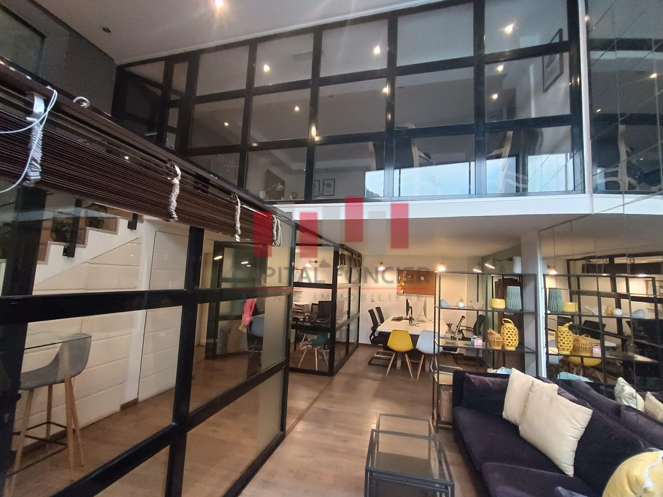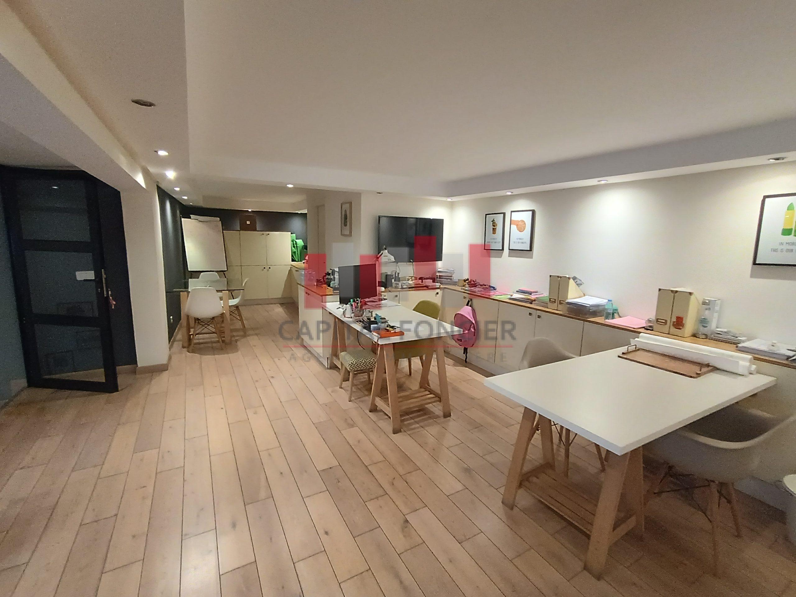 Capital Foncier vous propose un splendide bureau de 120m2 à la vente en duplex composé de 75m2 au rdc et 45m2 à l’étage. Le bien propose un aménagement très haut de gamme, il est aussi entièrement équipé (meubles, salles de réunion, clim, caméras, cloisons en noir, parquet en bois massif etc.) Pour plus d’infos contactez Mourad