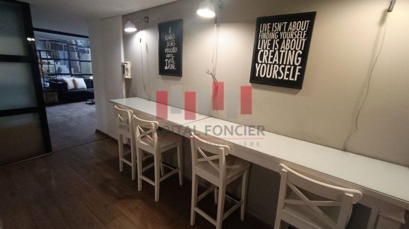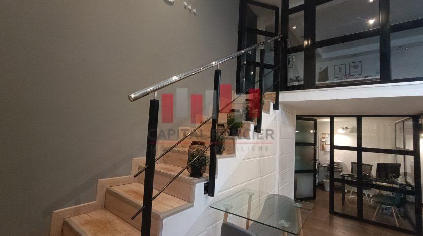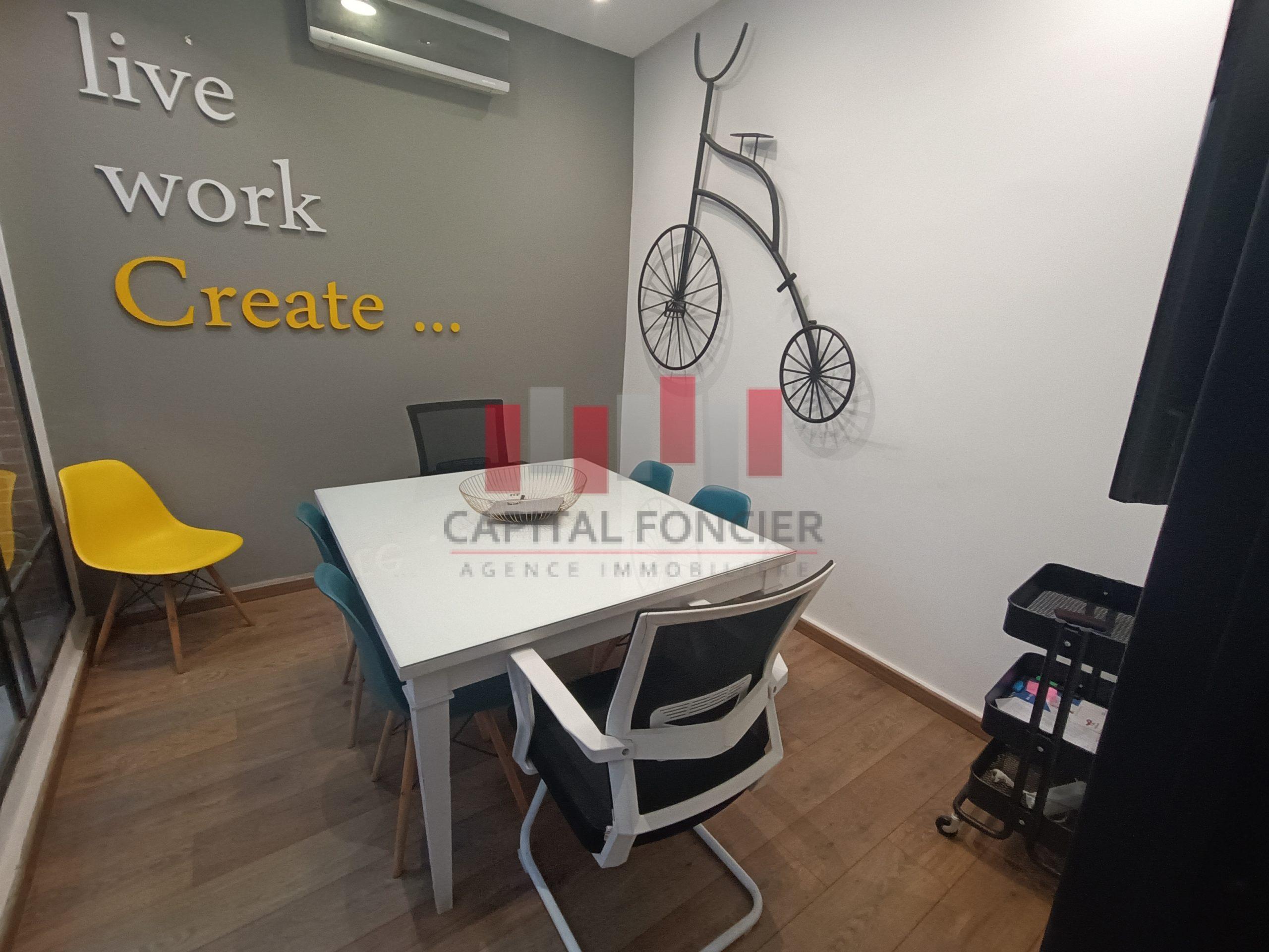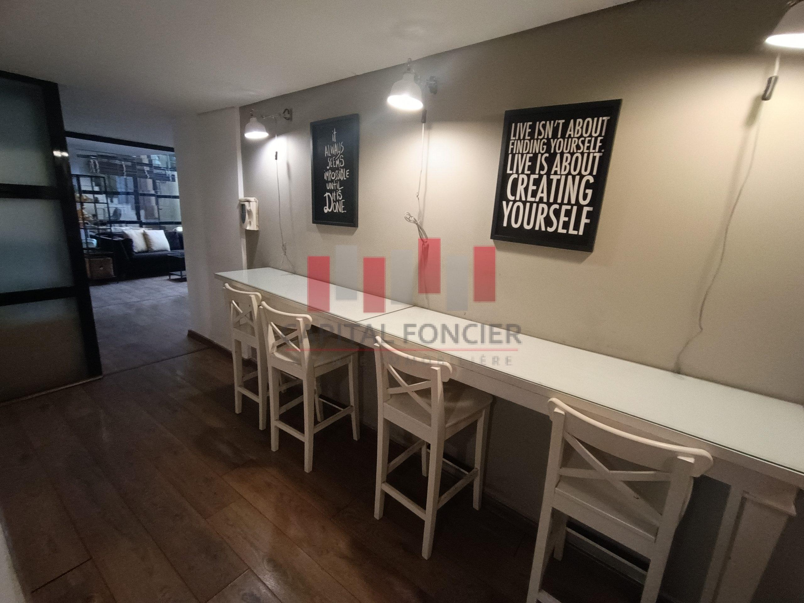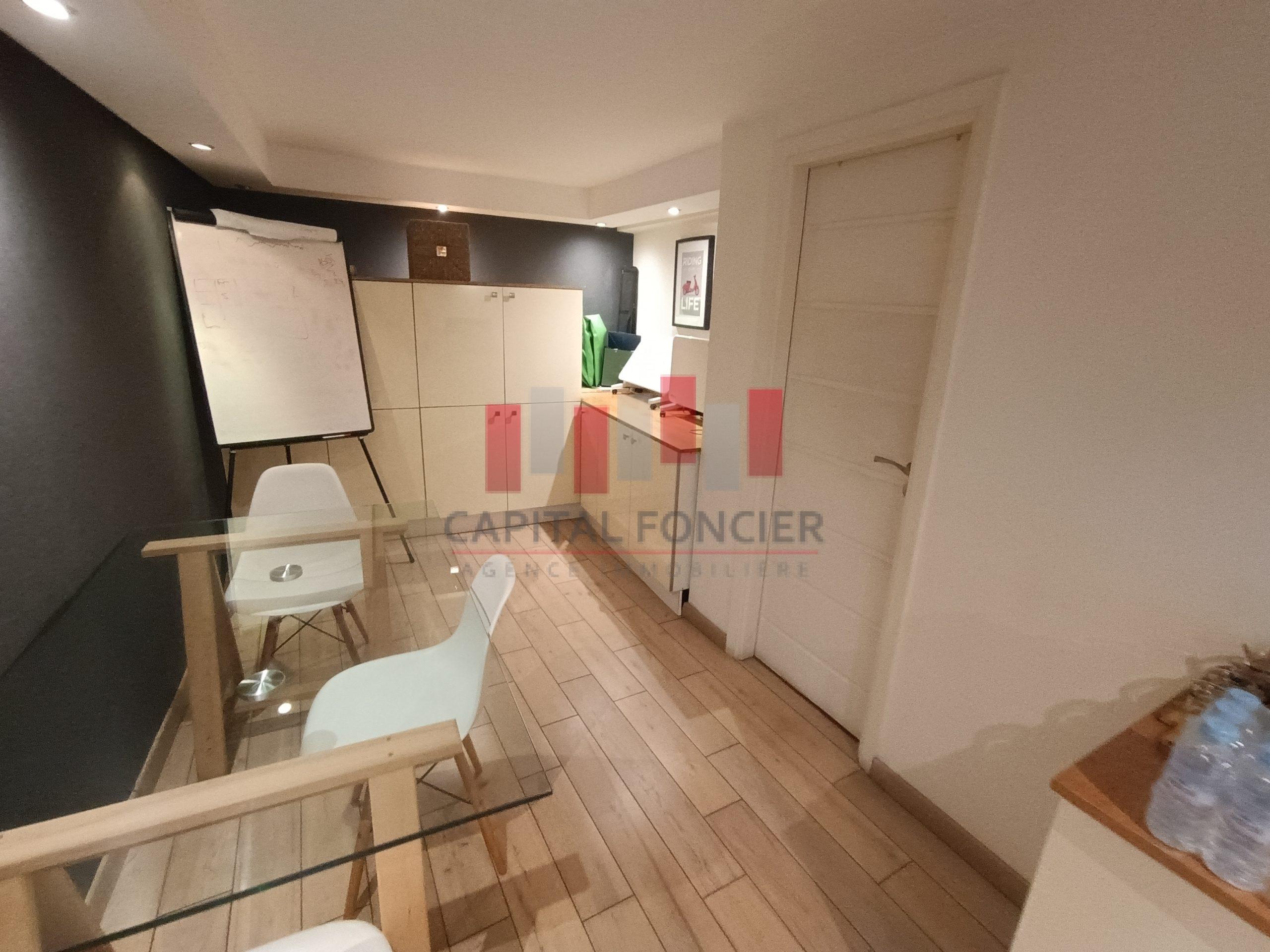 Capital Foncier vous propose un splendide bureau de 120m2 à la vente en duplex composé de 75m2 au rdc et 45m2 à l’étage. Le bien propose un aménagement très haut de gamme, il est aussi entièrement équipé (meubles, salles de réunion, clim, caméras, cloisons en noir, parquet en bois massif etc.) Pour plus d’infos contactez Mourad