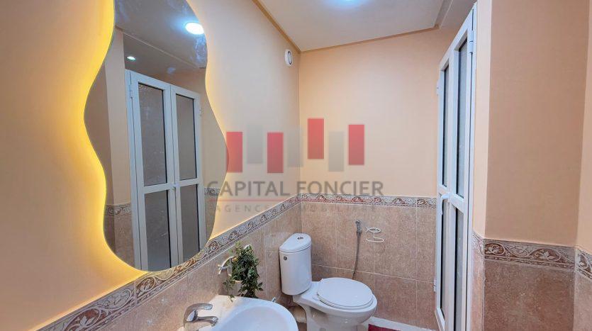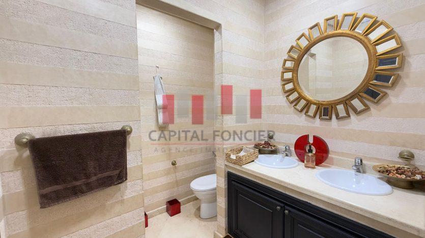 La villa est située sur Ain Diab Extension, proche Sindibad et Morocco Mall, à proximité immédiate de toutes les commodités, au cœur d’une résidence fermée et sécurisée, location d’une belle villa meublée de 400 m² habitables sise sur un terrain de 400 m² avec piscine.
