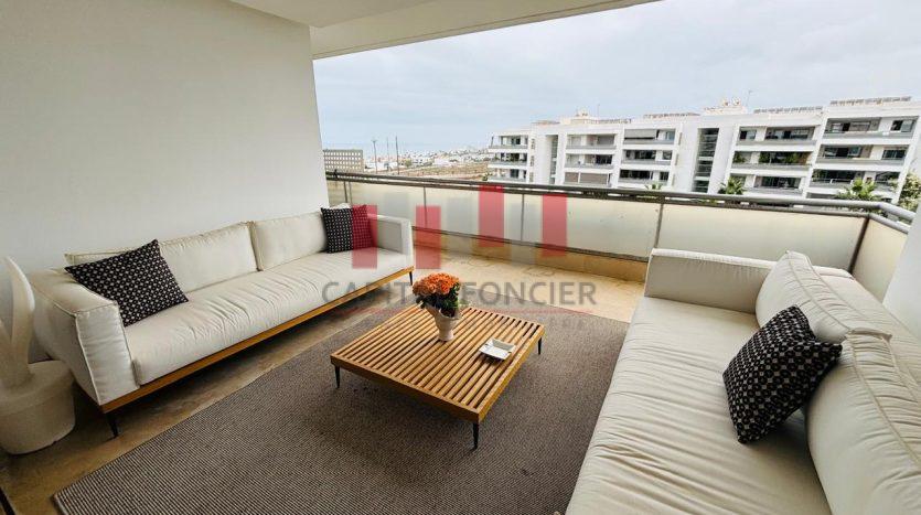 AIN DIAB : appartement vide vue mer au dernier étage a proximité de la mer d’une superficie de 220 m2 dont 20 m2 de terrasse. Il se compose d’un double salon, d’un toilette invité, d’une cuisine avec une chambre de personnel, de 3 chambres dont une suite parentale, de 2 SDB, climatisation centralisé place de parking.