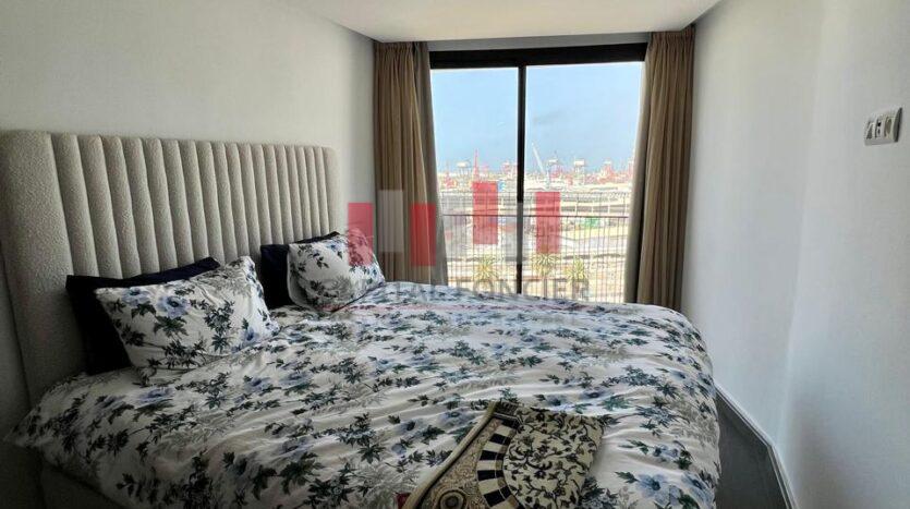 Il se compose d’un salon, cuisine américaine, de 2 chambres avec terrasse, une SDB, un toilette invité