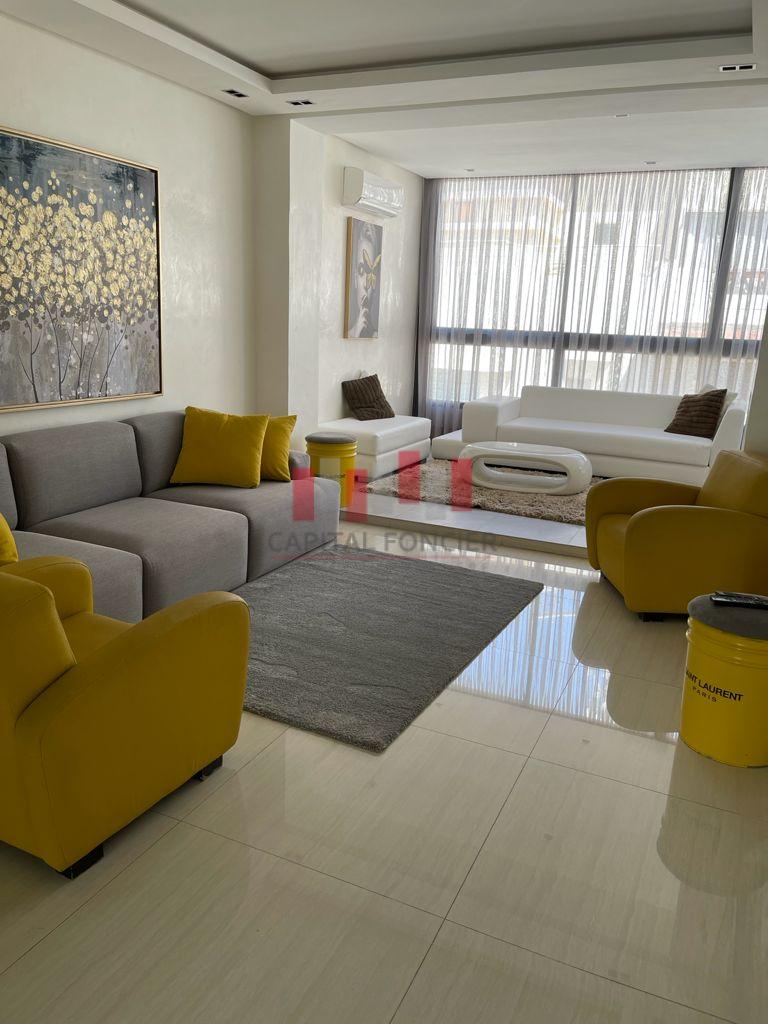Idéalement situé dans une rue prisée du quartier Racine, sur la rue Ahmed Amine, juste en face du restaurant Topkapi, ce superbe appartement meublé de 120 m² dont 30 m² de terrasse aménagée offre un cadre de vie raffiné et confortable.