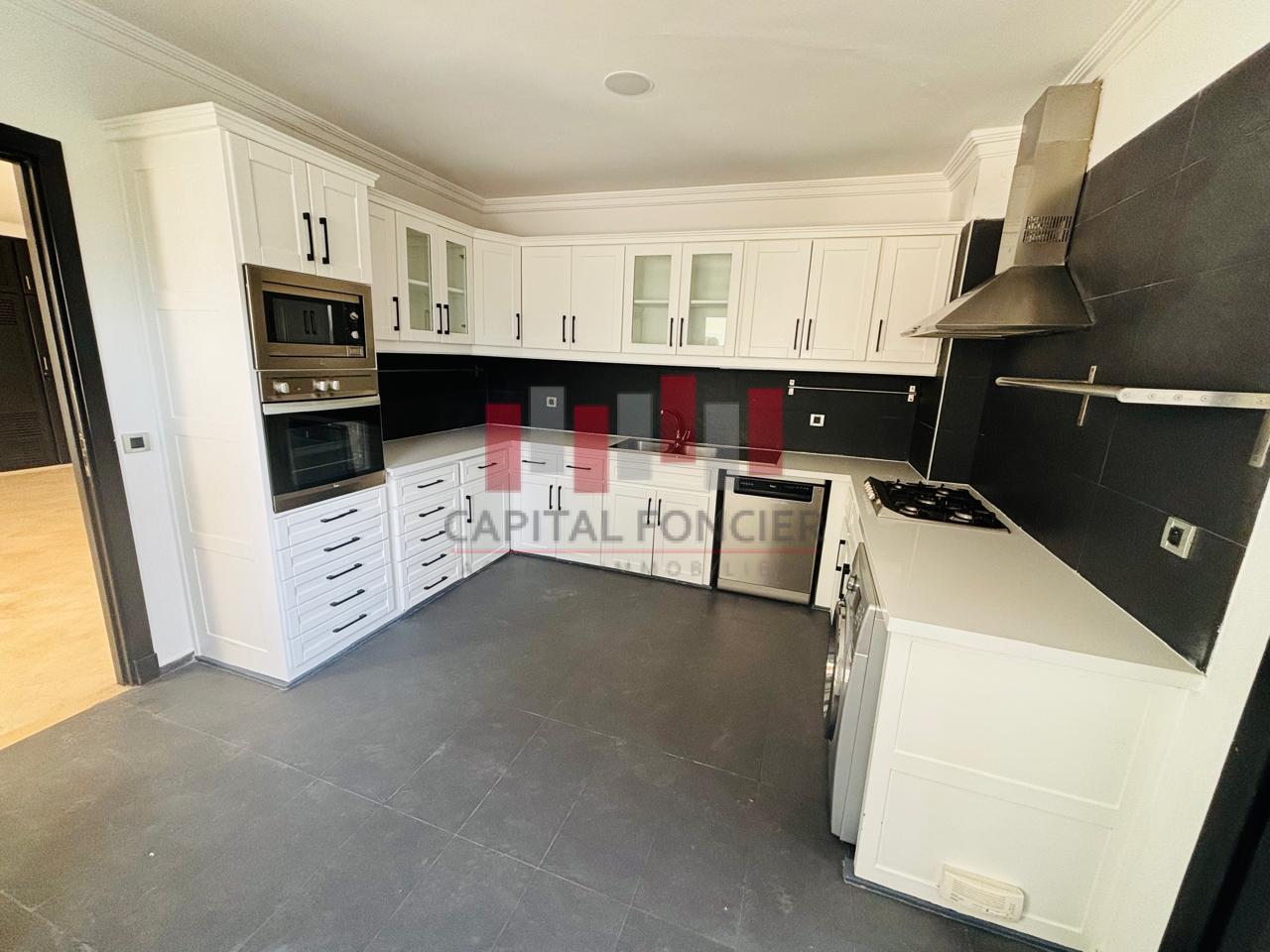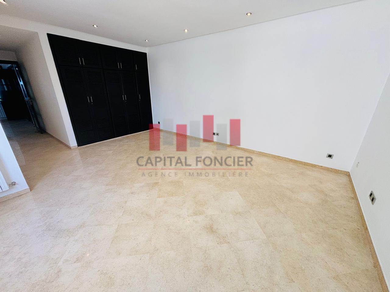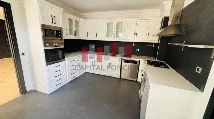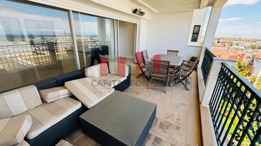 AIN DIAB ; apprêtement vide vue mer dans une résidence fermée avec piscine et salle de sport d’une superficie de 22à m2 dont 20 m2 de terrasse. Il se compose d’une grande suite parentale avec cheminée, d’une cuisine moderne totalement refaite, d’une chambre du personnel avec ses sanitaires, d’un toilette invité, de 3 chambres dont une suite parentale avec de nombreux rangements, de 2 sdb; Chauffage centrale, box privatif pour les voitures.