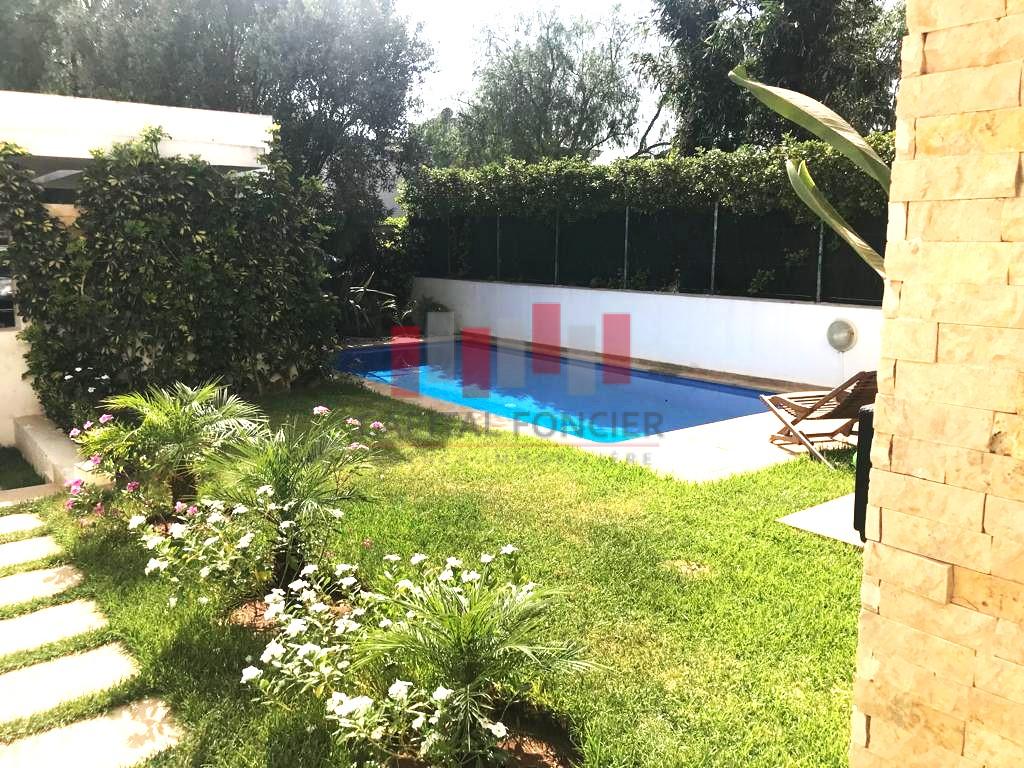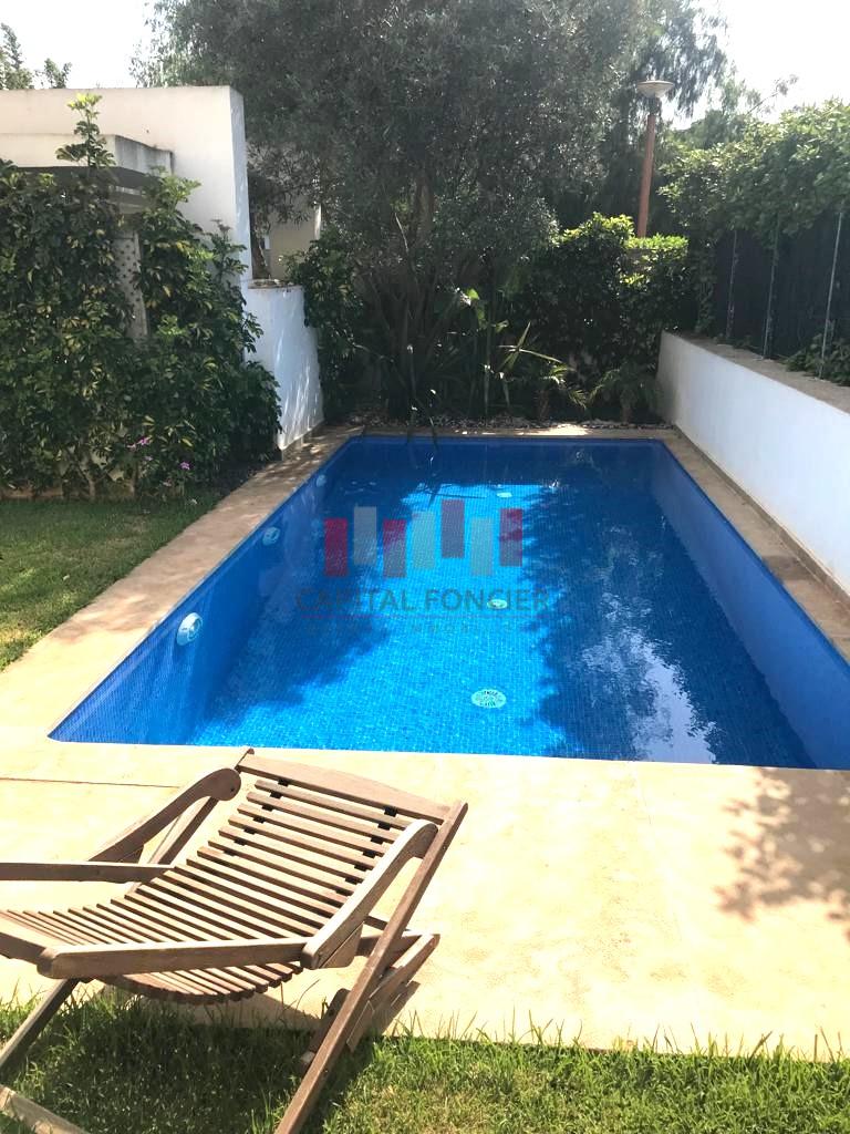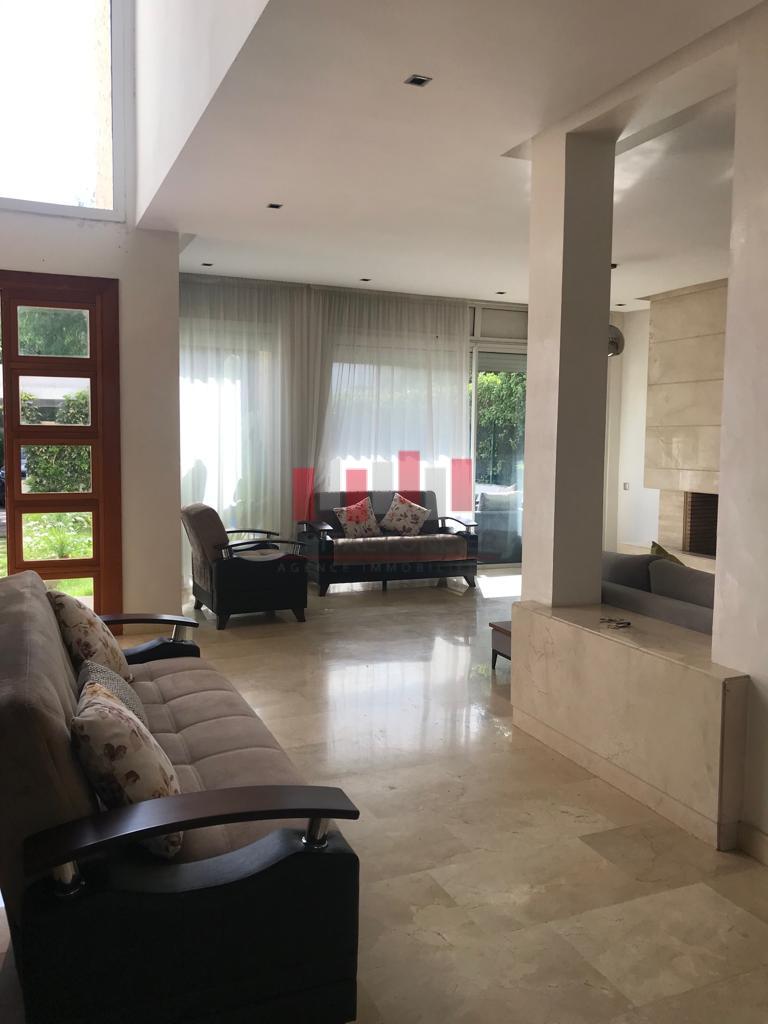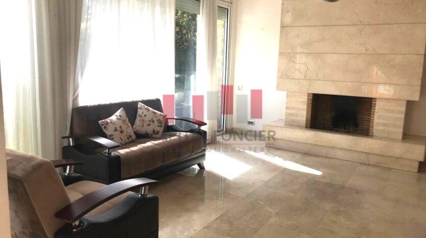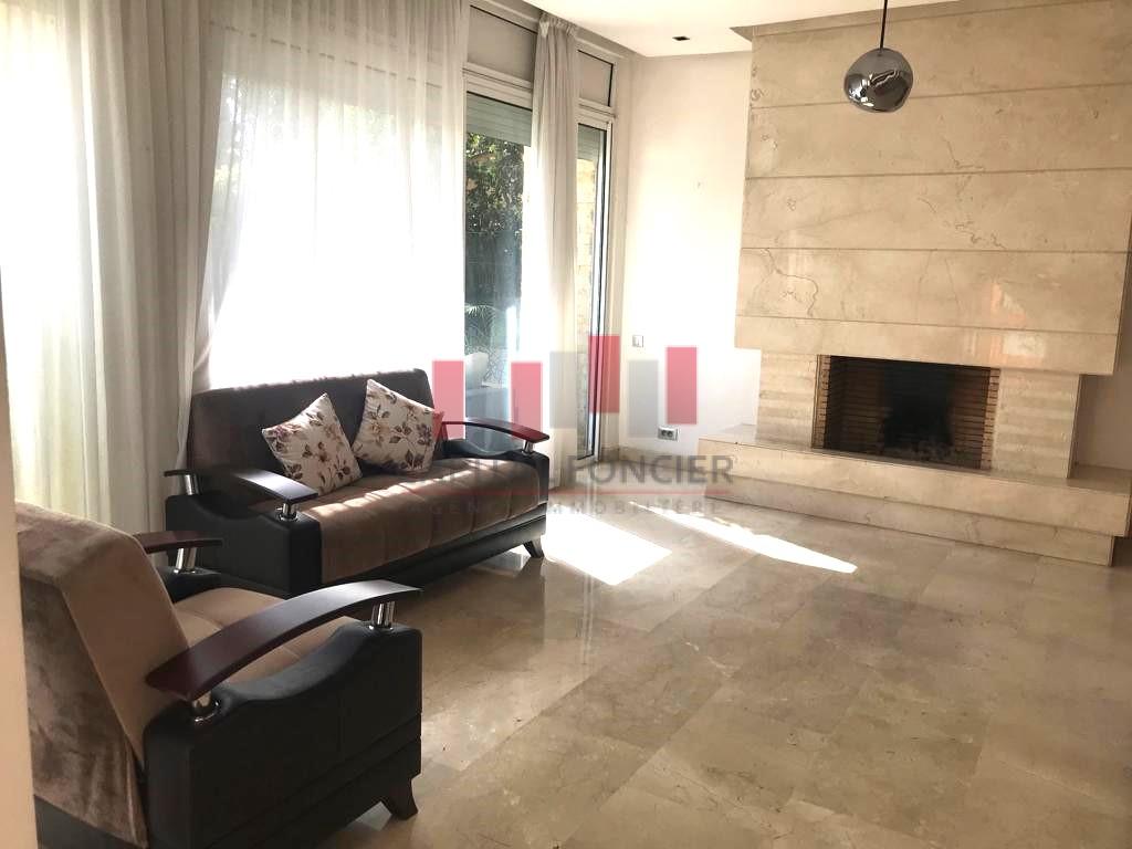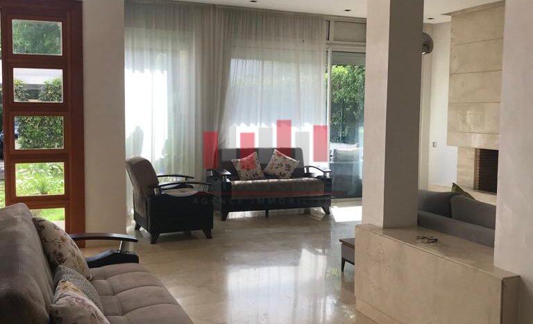 Très joli villa semi meublée , située dans une résidence fermée et sécurisée à Bouskoura , elle se compose d’un double salon avec coin cheminée donnant sur un jardin arboré avec piscine  , un coin salle à manger , une salle d’eau , et une cuisine entièrement équipée avec chambre de personnel . A l’étage 3 chambres dont la suite parentale avec dressing et salle de bain et deux autres chambres avec une salle de bain commune .