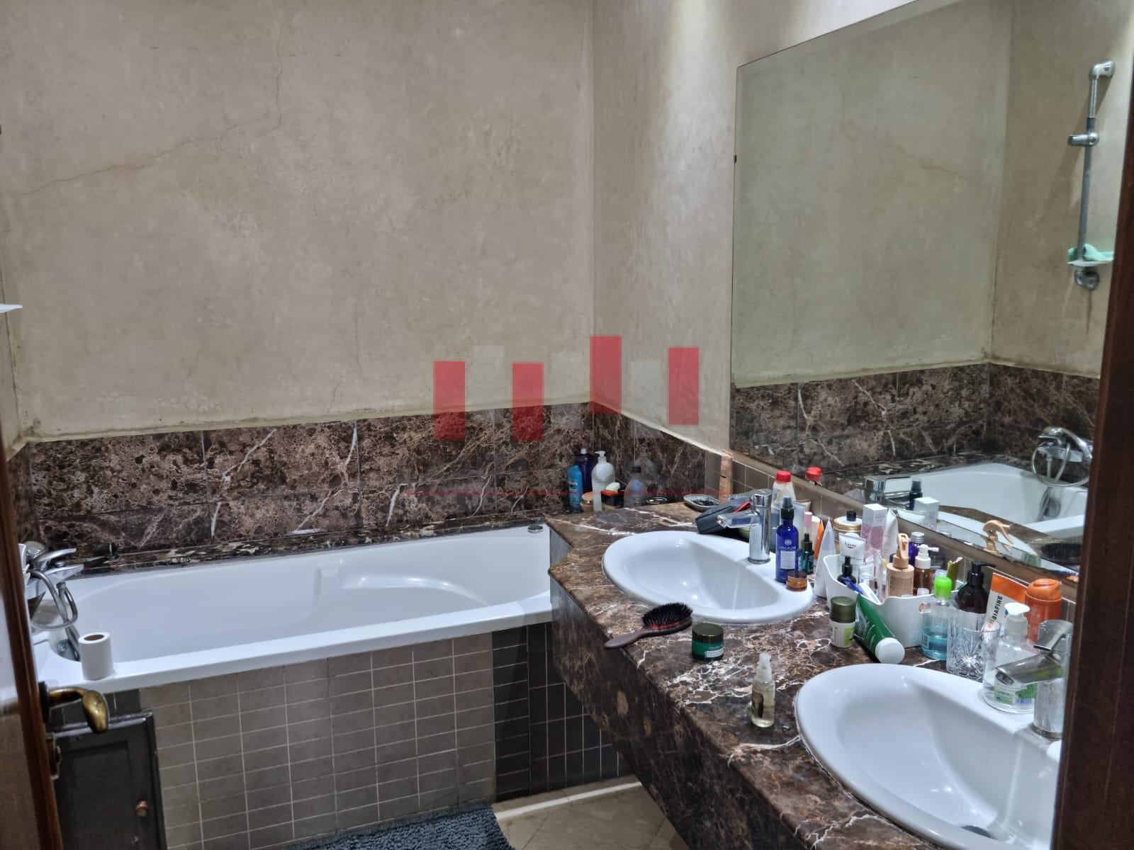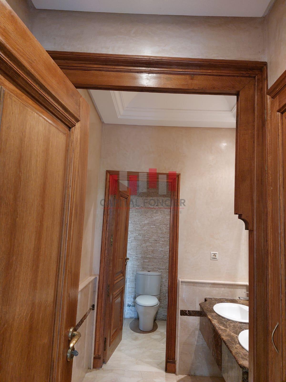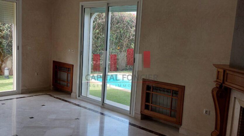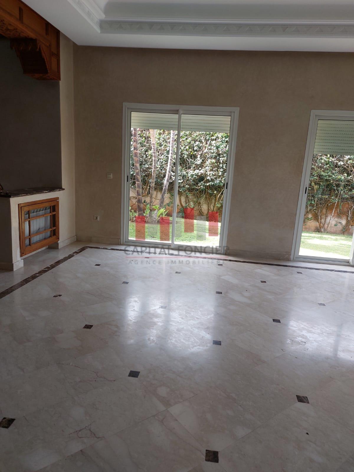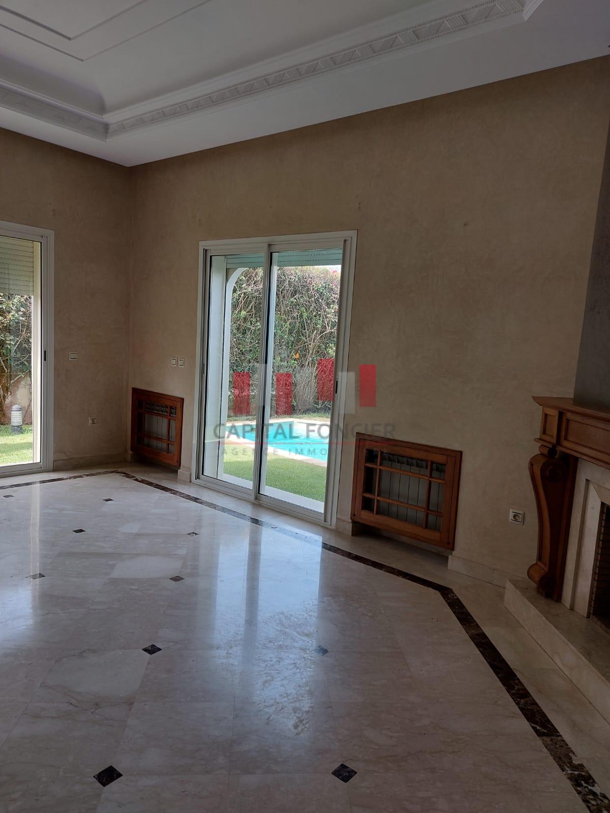 AIN DIAB : Villa vide disponible fin juillet d’une superficie de 450 m2.Au rez de chaussée elle se compose d’un double salon avec un espace cheminée, d’une cuisine au rez de chaussée, d’un toilette invité, d’une piscine et un grand jardin. A l’étage 4 chambres dont une suite parentale, 2 SDB, d’un sous sol avec espace du personnel.