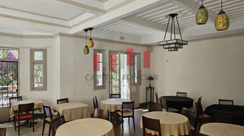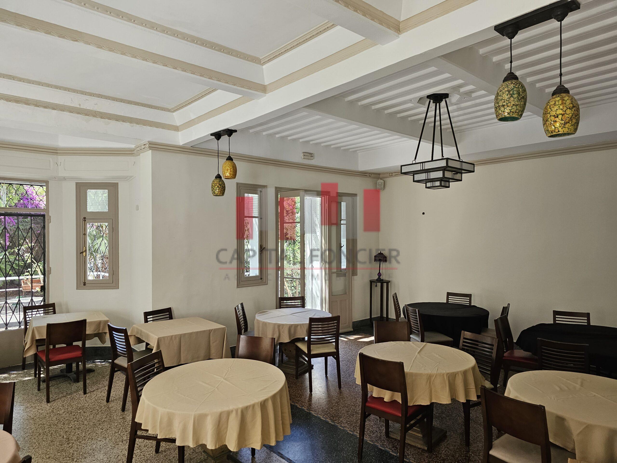 Capital Foncier vous propose une villa a usage restauration à la location d’une surface de 750 m2 se composante comme suit : 200 m2 au RDC aménagé + 250 m2 de terrasse + 200 m2 en étage open space incluant un bar + 100 m2 au sous-sol aménagé et équipé pour la partie cuisine , Excellent emplacement. Pour plus d’info, n’hésitez pas à contacter Driss de Capital Foncier au 06 02 97 77 80. Photos confidentielles .