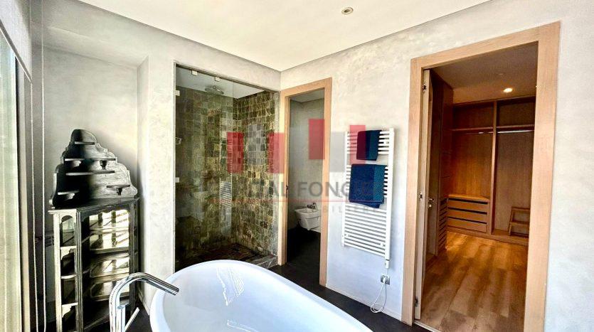On y trouves 3 chambres dont une splendide suite parentale donnant sur la piscine, une tres beau dressing ainsi que d’une salle de bain avec douche à l’italienne et baignoire, les deux autres chambres ont une salle de bain commune avec douche à l’italienne.