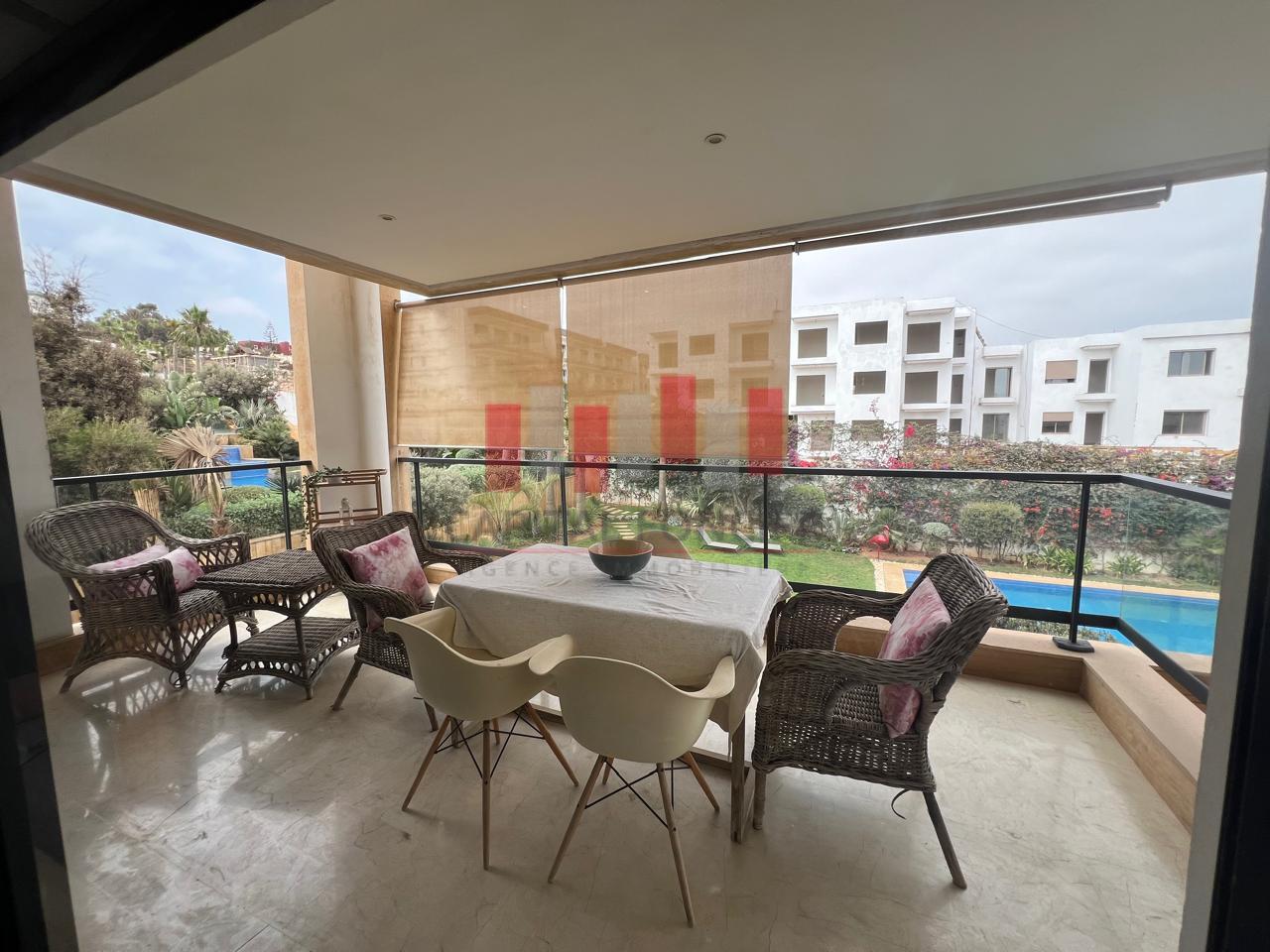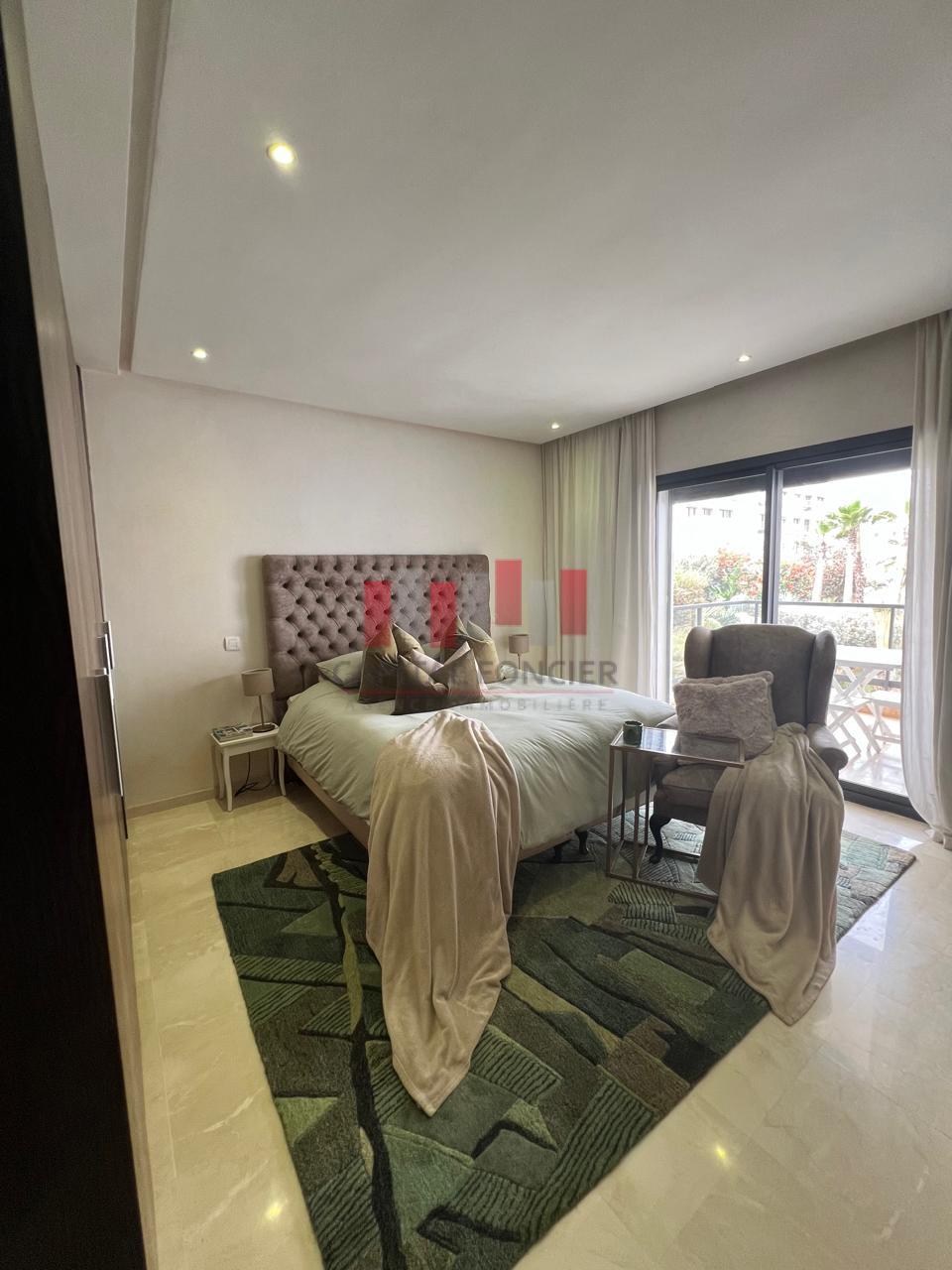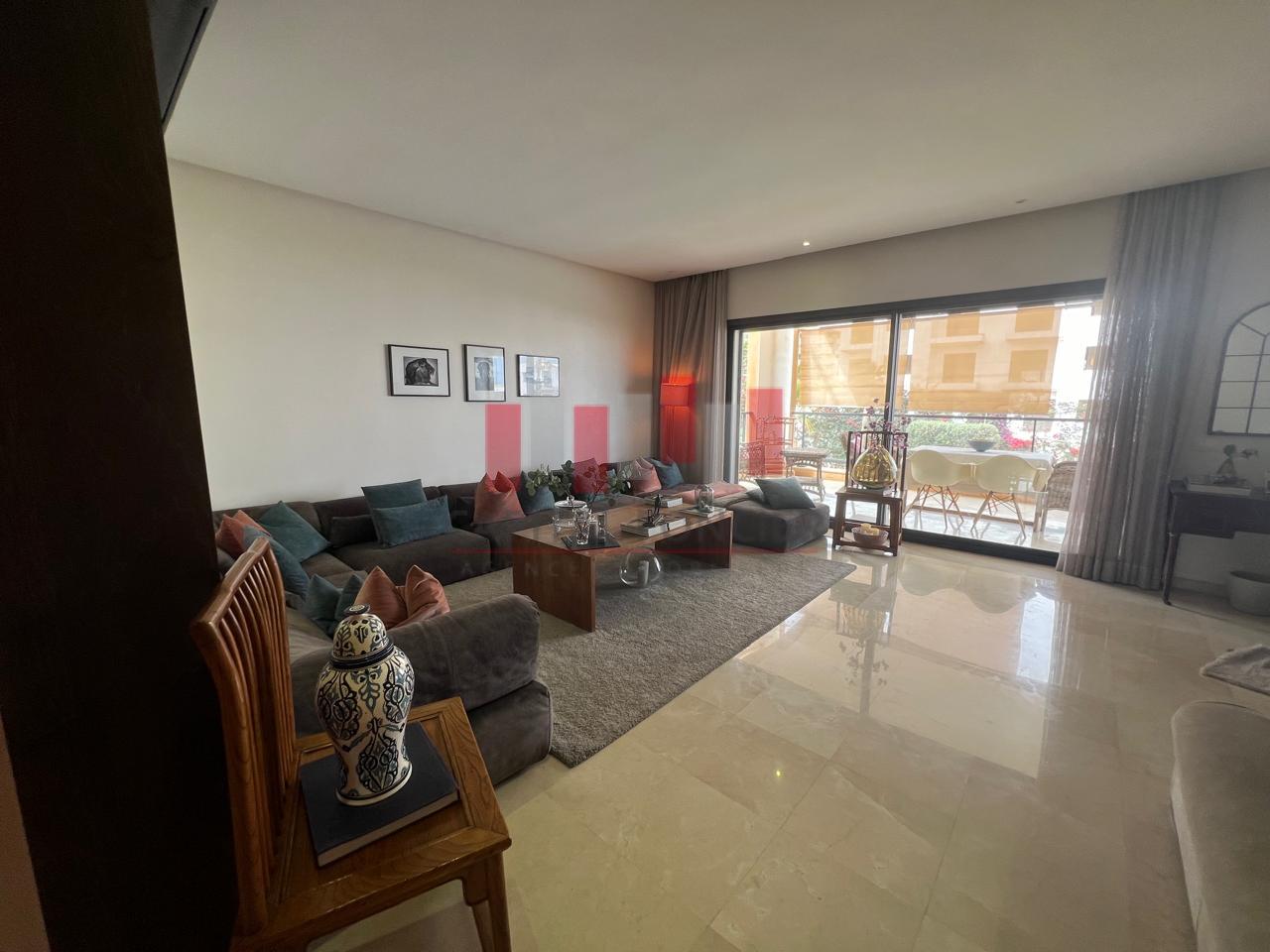 Appartement meublée avec goût avec du mobilier haut de gamme d’une superficie de 157 m2 dans une résidence sécurisée, ensoleillé et totalement au calme.